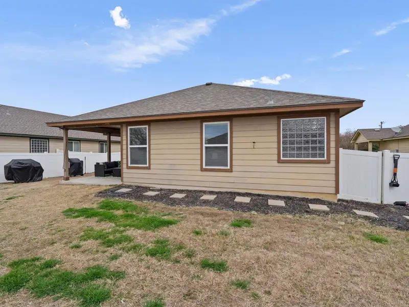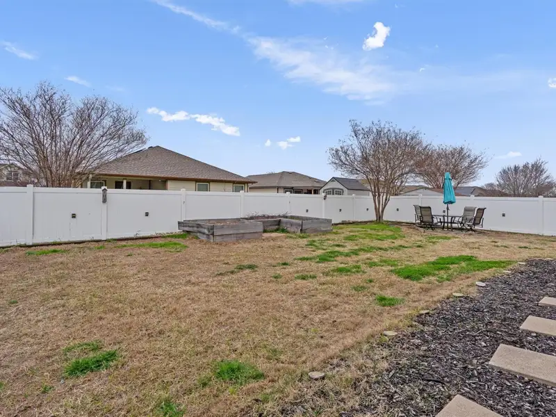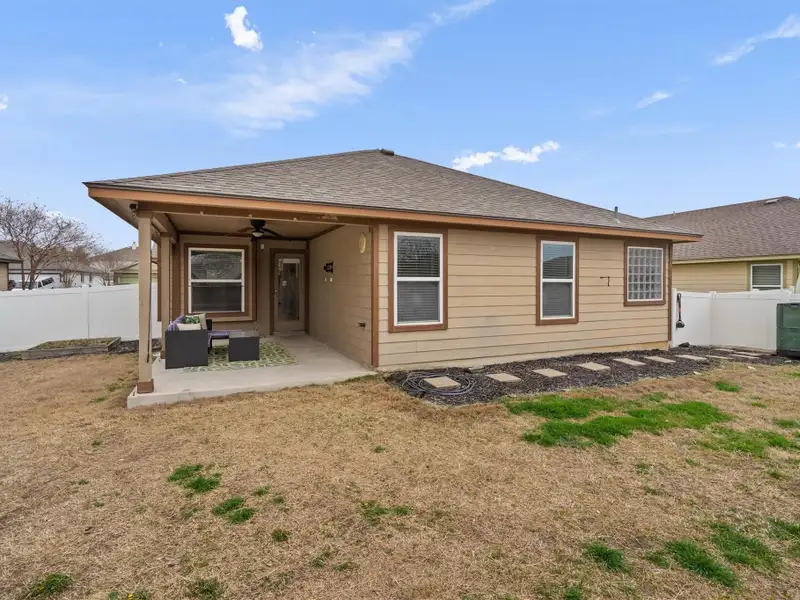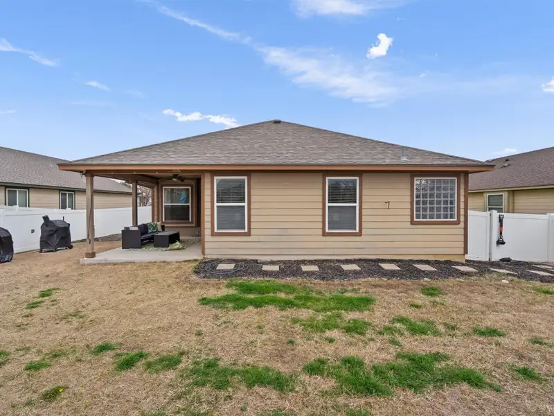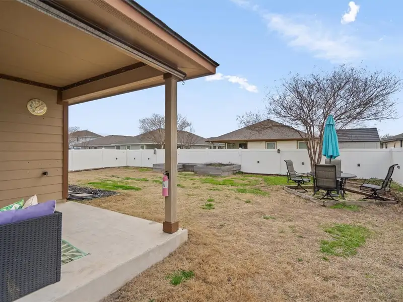 - Fully fenced backyard with covered patio