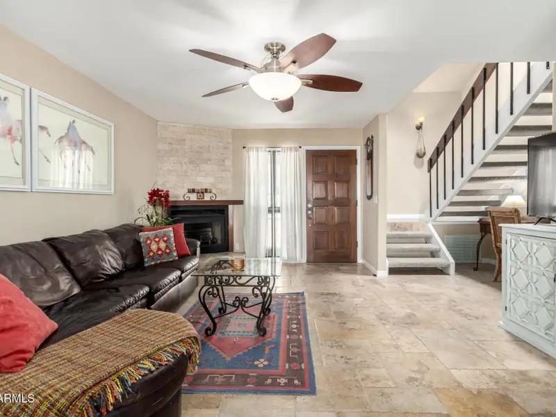- Fireplace in bright great room