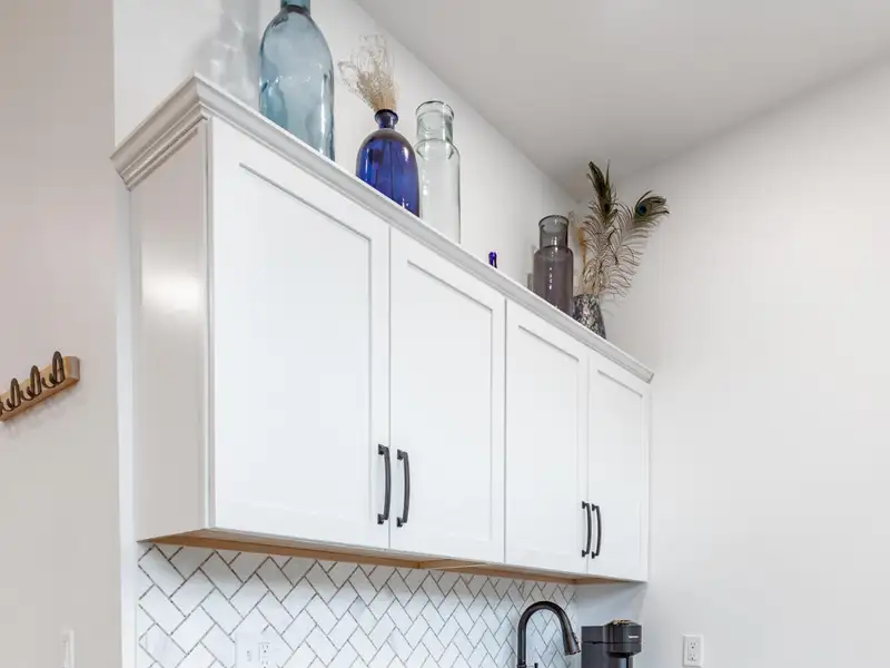 - Quartz countertops and GE Cafe fridge