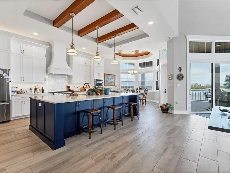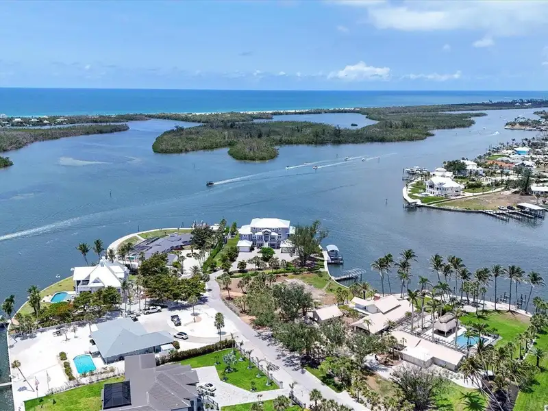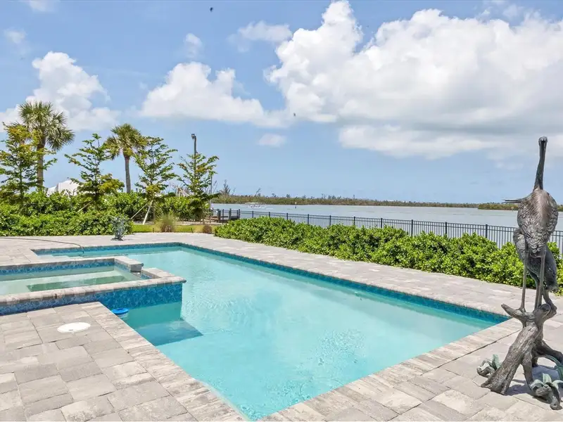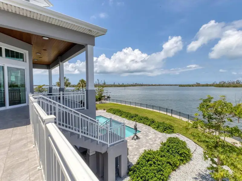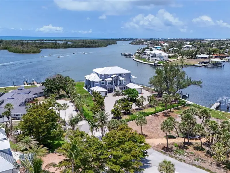 Magnificent 5 bedroom, 5 bath waterfront estate with over 5,300 sq.ft. in the historic neighborhood of Cape Haze offers mesmerizing panoramic views in every direction and superb boating access. Built in 2021 the home sits on maybe the most spectacular waterfront site in the area. The property is nearly a full acre and is surrounded by Pelican Bay and the Intracoastal Waterway with over 350 feet of seawall and excellent dockage. Less than a mile to the Gulf of Mexico and Charlotte Harbor, even bigger water is only minutes away. Drive down the long round-about driveway with stunning landscaping and towering mature trees, and gorgeous views of the bay and dockage before you park your car. Designed and built to highest coastal construction standards, the property is at home on the water. Heavy duty concrete piling and poured beam construction, impact storm windows and doors, metal roof and a 80KW Kohler generator with a 1,000 gallon propane tank. Entering the stunning home a grand 2 story great room with stunning beamed ceiling and a wall of 8 foot sliders and transom windows that brings the serene activity of the Intracoastal into the home. The large chef's kitchen has a giant island, Wolf range, custom wood cabinetry with endless storage. Just off the kitchen is an enormous laundry / pantry room with a folding island, large windows and tremendous cabinet space. Incredible outdoor living areas with a massive lanai with wood paneled ceiling off the main living room, terraces off of bedrooms and a giant patio around the stunning heated pool and spa, all affording spectacular water views. Gorgeous primary suite with a generous bedroom, large walk-in closet, and a comfortable sitting space for looking out bay windows at the waterway. The spa-like primary bath offers a large soaking tub, pebble tile flooring, expansive roman shower and dual vanities. The guest baths all have their own unique designs with custom tile work and wood cabinetry vanities. In addition to 5 bedrooms there's a large office/den that also affords incredible water views. Incredible nature and wildlife with multiple bird nests on the property, and dolphin and manatees frequently swimming around the shore. Prime boating location being at the southern end of Cape Haze, you're in world-class fishing waters of Charlotte Harbor or off shore waters of the Gulf of America in no time. Just minutes to historic Boca Grande, lots of shopping and fine dining, numerous private golf clubs, the Coral Creek Jetport, and miles of tranquil sandy beaches.