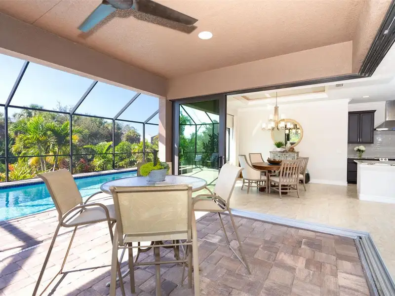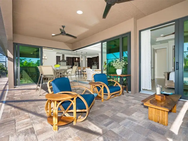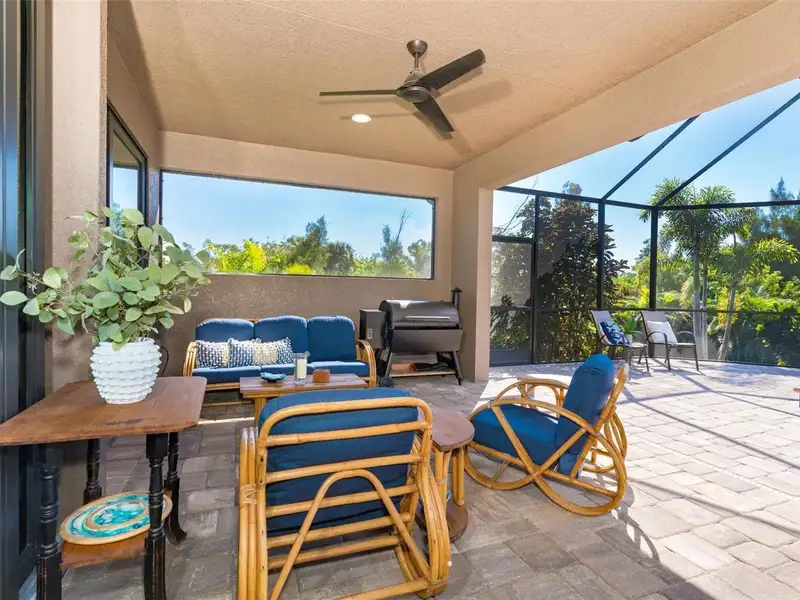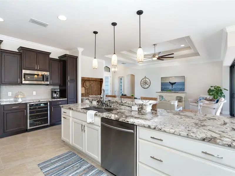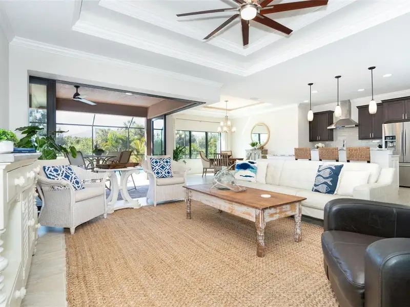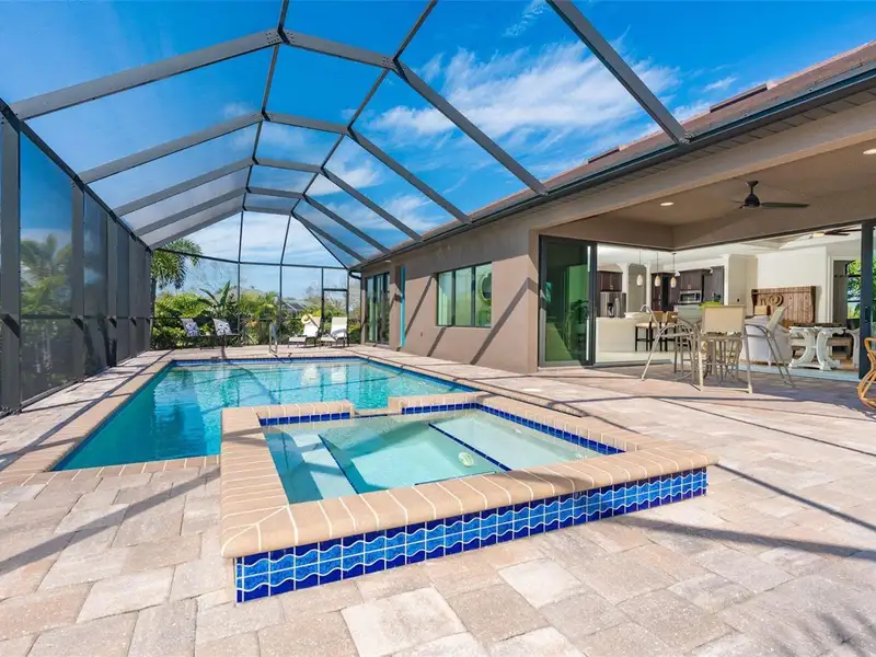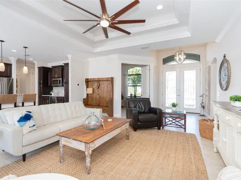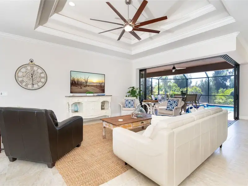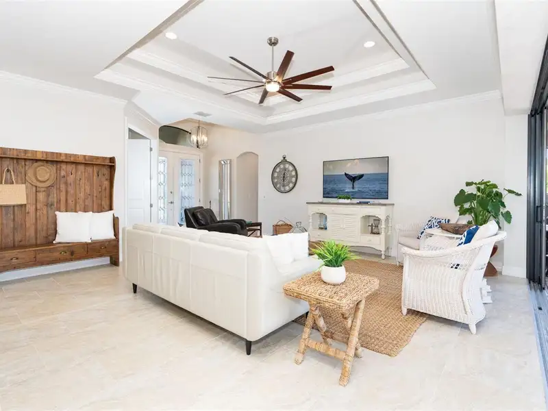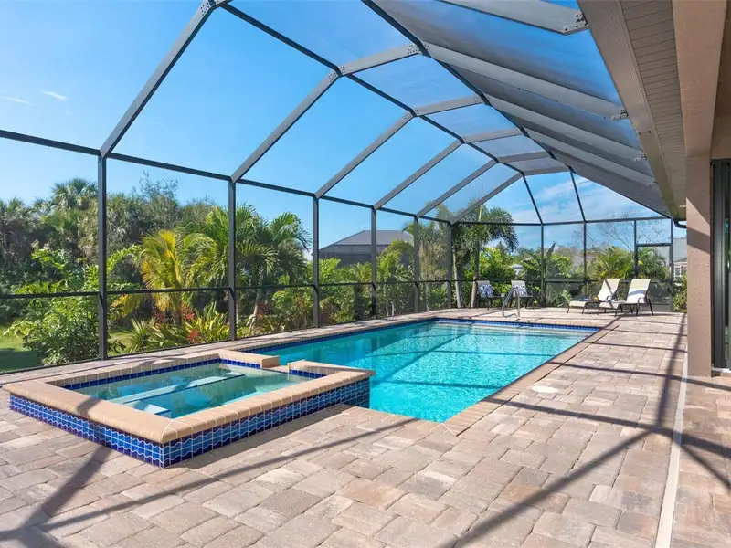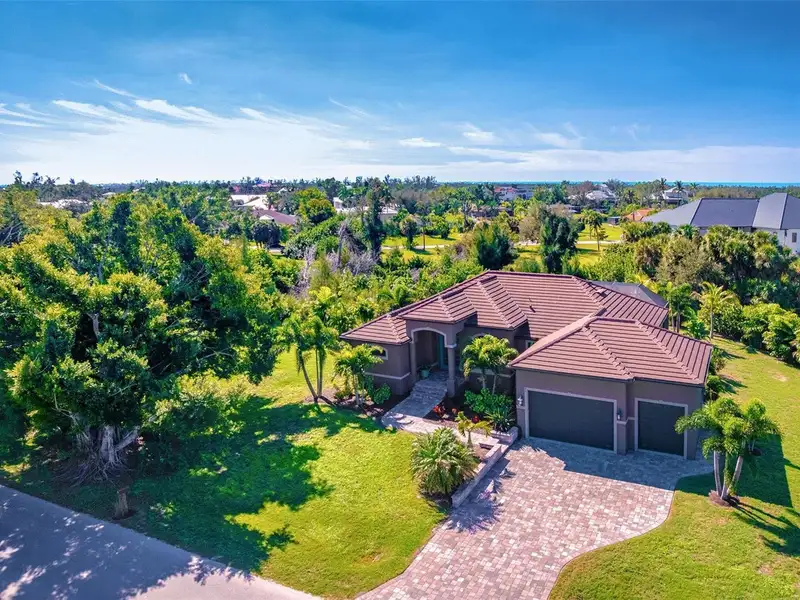 Luxurious Coastal Retreat Near the Gulf – Private 0.7-Acre Oasis with Saltwater Pool & Spa Welcome to your dream coastal oasis! Perfectly positioned near the Gulf, this exceptional property offers a private sanctuary on a beautifully landscaped 0.7-acre lot. Surrounded by lush tropical foliage and enhanced with a new irrigation system installed in 2025, this residence exudes tranquility and elegance from the moment you arrive. Step through beveled glass entry doors into a world of refined coastal living. The interior showcases tall ceilings, 8-foot interior doors, crown molding, and oversized baseboards, all contributing to an atmosphere of timeless sophistication. The master suite is a serene retreat, featuring a tray ceiling, spacious walk-in closet, and a luxurious en-suite bath complete with granite double vanity, walk-in shower with frameless glass doors, and private sliders leading to the lanai. Two guest bedrooms share a beautifully appointed bath with granite countertops and a frameless glass shower. At the heart of the home, the chef’s kitchen is both stylish and functional, offering a large island, 48” cabinetry, pull-out drawers, bar area with wine refrigerator, and high-end appliances—perfect for entertaining or everyday enjoyment. The open-concept great room, enhanced by a double tray ceiling and two walls of pocketing sliders, effortlessly extends your living space to the lanai. Outside, the expansive paver lanai is ideal for both relaxing and entertaining, featuring a covered area for shade and a sunning deck that surrounds the heated, saltwater pool and spa (14' x 28'). Whether hosting guests or savoring quiet moments, this outdoor retreat is the perfect extension of your Florida lifestyle. Additional highlights include a three-car garage with overhead storage, dedicated kayak and bike space, and a paver driveway. Residents may also enjoy optional HOA membership for exclusive access to the Don Pedro private beach and boat dock. Located just minutes from Boca Grande and Englewood beaches, this home places you close to world-class boating, fishing, golfing, kayaking, biking, and nature trails in nearby state and county parks. This property is more than a home—it’s a lifestyle. Experience the beauty, privacy, and sophistication of Southwest Florida coastal living at its finest.