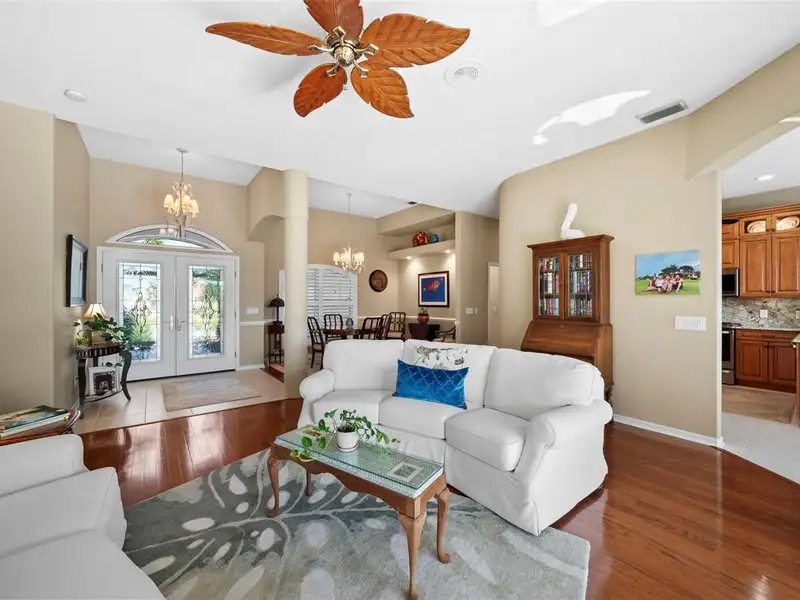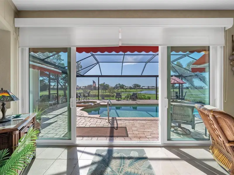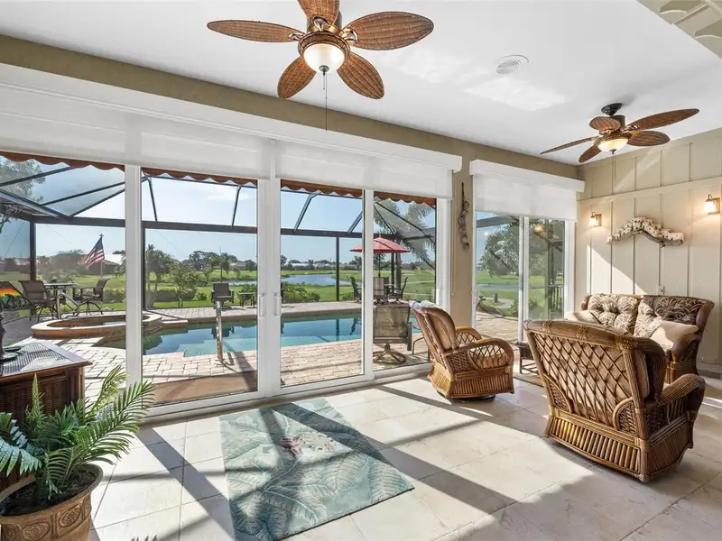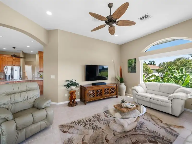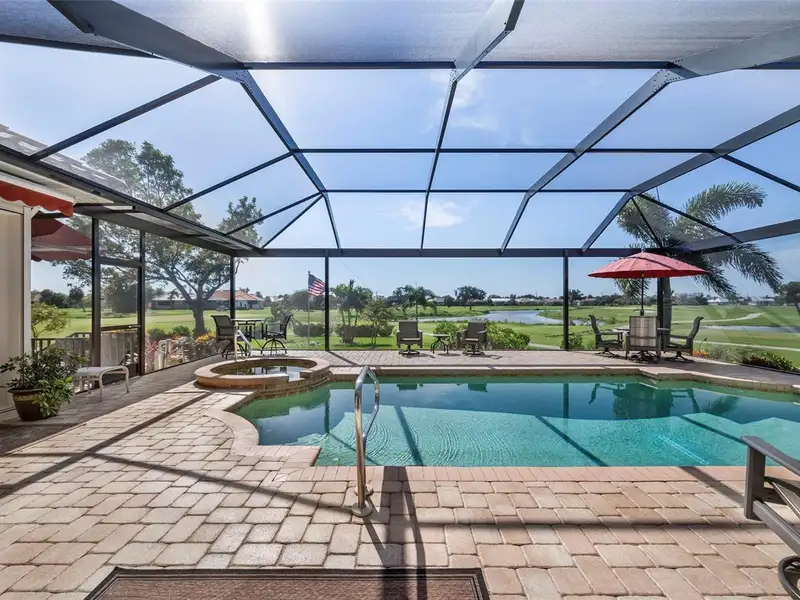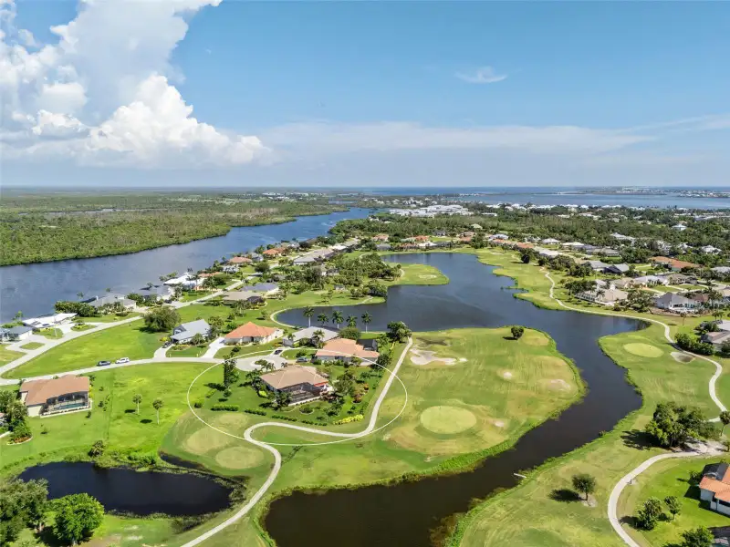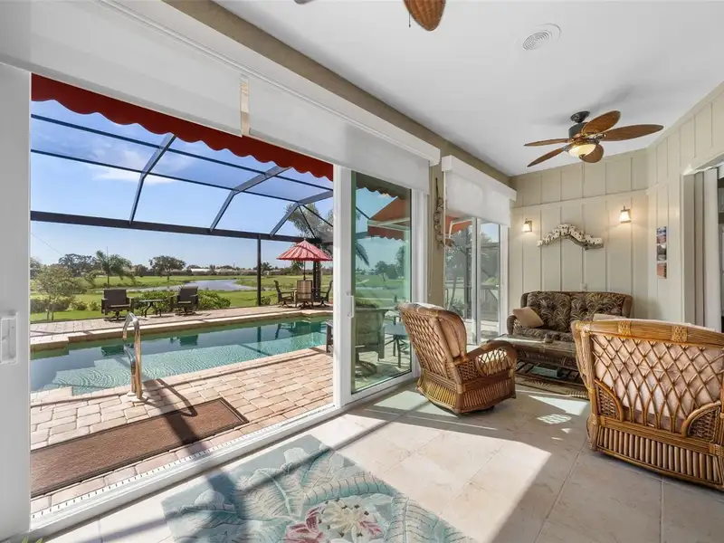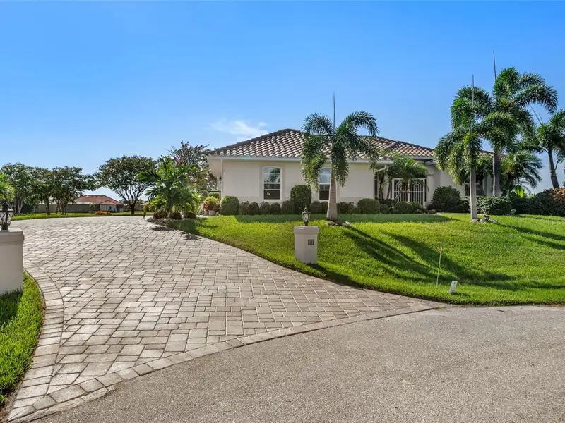 An extraordinary opportunity awaits in one of Placida’s most sought-after neighborhoods. Nestled at the end of a quiet, secluded cul-de-sac, this elegant residence is thoughtfully situated across two expansive parcels, surrounded by the lush fairways of The Links Golf Course and scenic waterways that define coastal Southwest Florida living. Enjoy panoramic views of winding lakes that gracefully wrap around the home, along with picturesque vistas of the Coral Creek waterway just across the street. The park-like grounds are a true sanctuary, featuring manicured gardens, a tranquil koi pond with waterfall, fruit trees, and lush tropical foliage — all designed for peaceful living in harmony with nature. Step inside to discover a warm and welcoming interior with wood and ceramic tile flooring throughout, soaring vaulted ceilings, and abundant natural light. Both the living and family rooms offer captivating views, creating the perfect setting for relaxation or entertaining. The home has been meticulously maintained and thoughtfully updated, with premium enhancements that include a new roof in 2020, new impact-resistant windows and doors, storm-rated garage door, and a new AC system in 2021. The chef’s kitchen, fully remodeled in 2016, features light wood cabinetry, stone countertops, and top-tier appliances, opening seamlessly into the family room and out toward breathtaking views. In 2023, the lanai received a stunning upgrade with a new "open view" pool cage, maximizing visibility of the surrounding landscape. The heated saltwater pool is the ideal place to unwind and enjoy Florida’s year-round sunshine. Located in Cape Haze Windward, a premier Placida community known for its charming golf course, winding streets, generous greenbelts, and proximity to nature preserves, waterways, and parks. You'll be walking distance to Publix, local restaurants, and shops, and just minutes from historic Boca Grande, world-class fishing, boating, multiple marinas, and renowned golf courses.