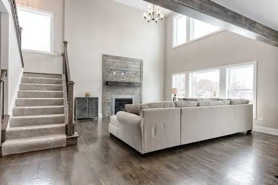 - Two-story family room with fireplace