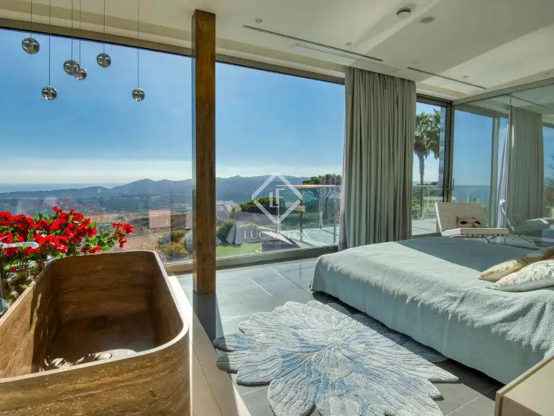 - Expansive windows with sea and mountain views