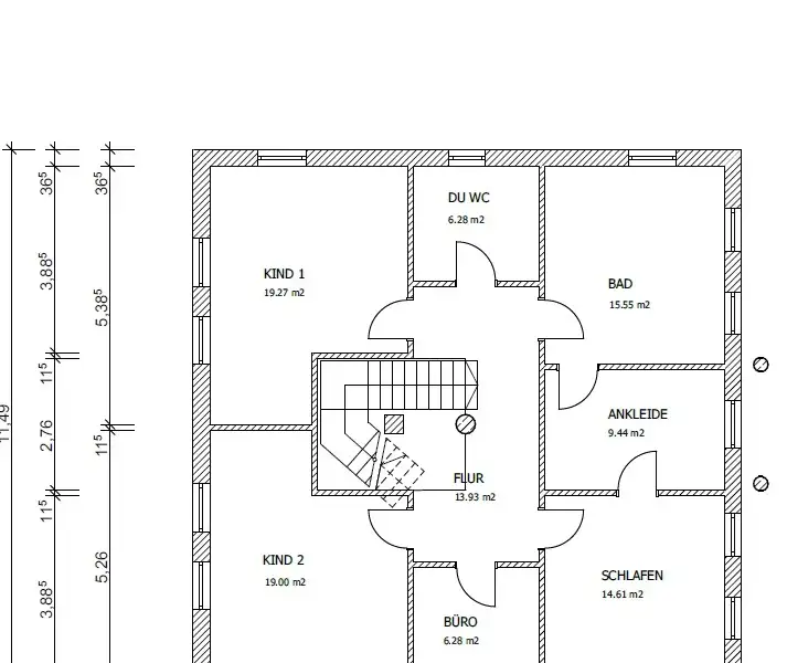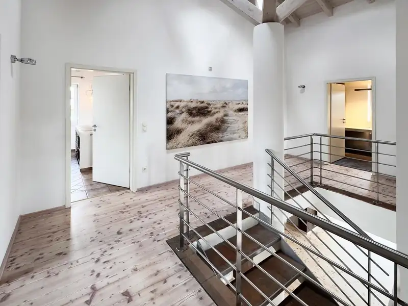 The upper floor impresses with its full room height and offers a well thought-out room program: