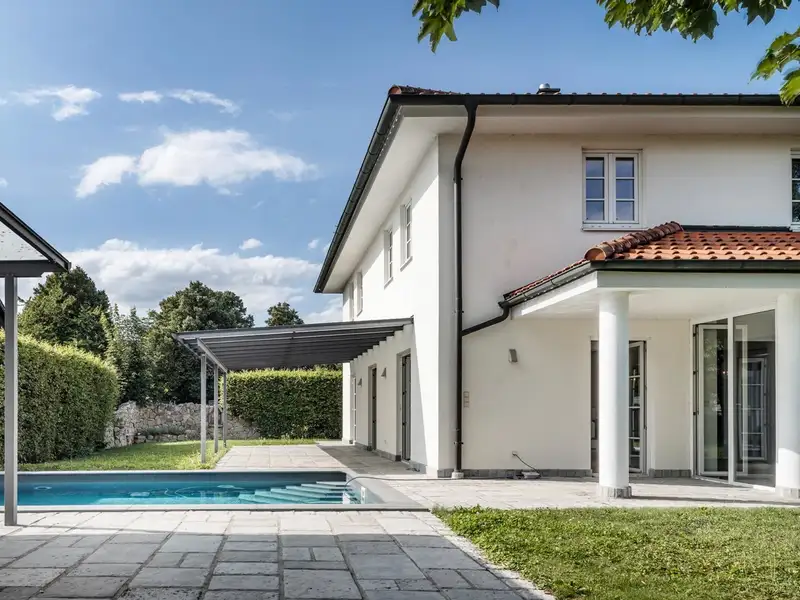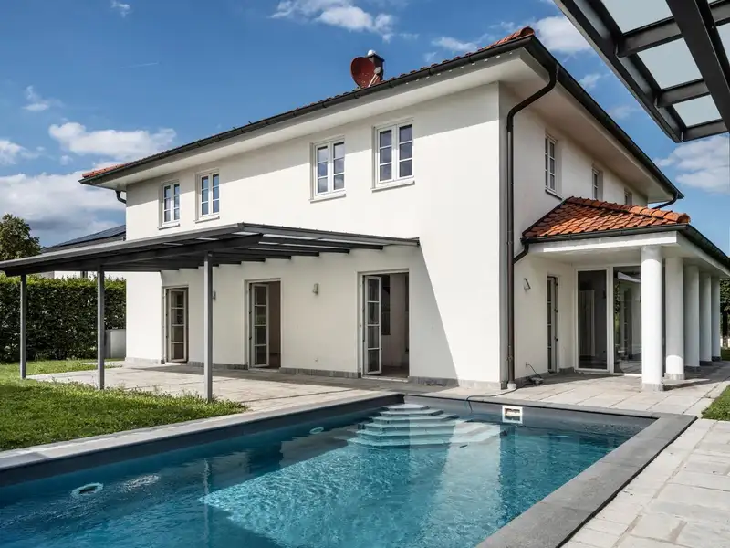 Welcome to a property that combines the lifestyle of Tuscany with the demands of modern living. This prestigious, detached villa with approx. 260 m² of living space offers you a stylish retreat - completely ready to move into and available immediately. Here you can expect not only well thought-out architecture, but also numerous amenities such as a heated outdoor pool, a light-flooded fitness pavilion, a spacious double garage, high-quality materials and a garden to relax and feel good.