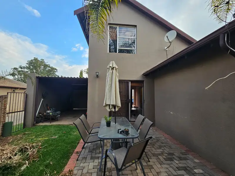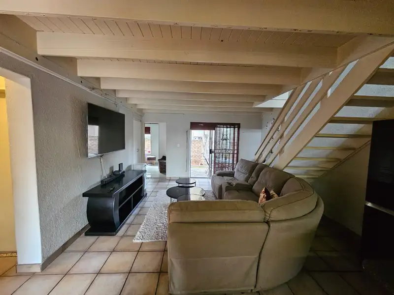 Introducing a charming 3-bedroom, 2-bathroom duplex nestled within a secure estate. The downstairs layout features a main en-suite bedroom, a second bedroom, and a family bathroom, along with an inviting open-plan lounge, dining area, and kitchen. Enjoy seamless indoor-outdoor living with a patio accessible through sliding doors, complemented by a small, enclosed garden and a single garage. Upstairs, you'll find a versatile mezzanine level perfect for a playroom and a study. Levies R1905.37 and R&T R1008.00 ( electricity and water invoiced by Body Corporate, based on consumption) Don't miss the chance to view this delightful unit and make it your new home in 2025!