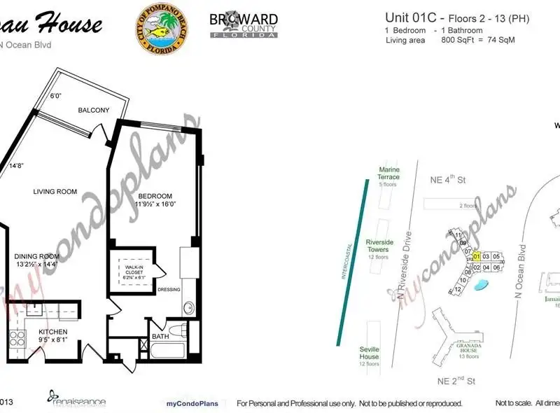 301 North Ocean Boulevard #1201, Pompano Beach, Florida, 33062, USA offers the following features: