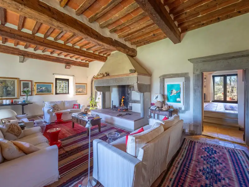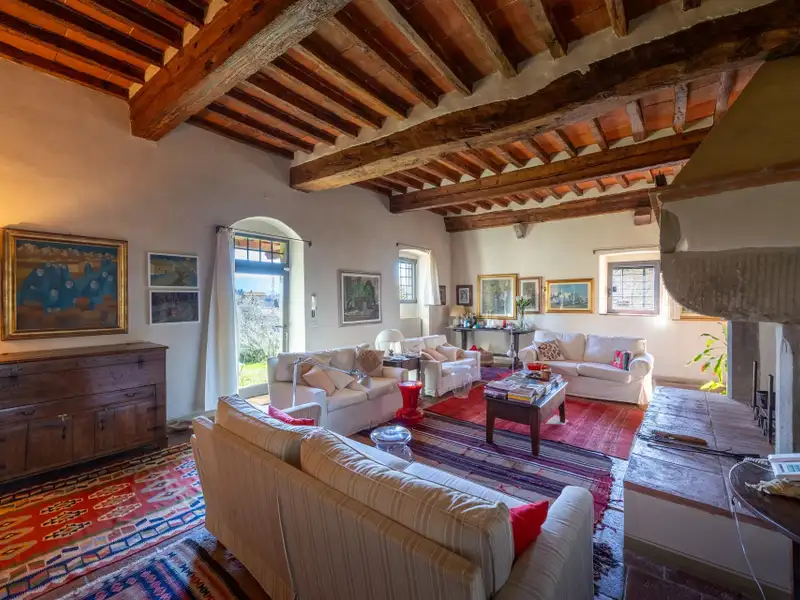 The hamlet and the property are located in a position from which, as far as the eye can see, no settlements such as factories, highways, railways. The landscape is, therefore, made up of woods and estates cultivated with olive trees and vines. Clearly visible are the Consuma Pass and the forest of Vallombrosa with the bell tower of the Abbey.