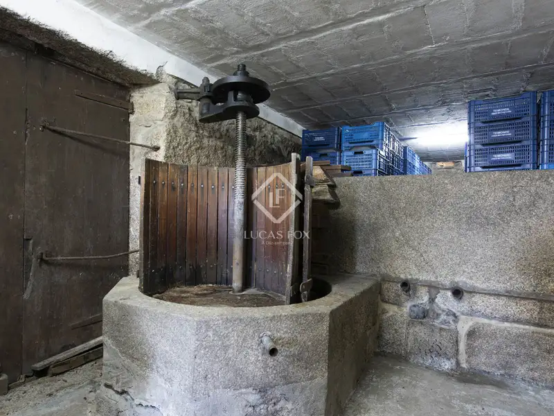 One area (Main Farm) we find is the productive one, which contains a plantation of 3 hectares of Albariño vineyard with D.O. Rias Baixas and a plantation of two hectares of Kiwi farm. In the same area, we find the large warehouse where we find the tools necessary to maintain the property with tractors, sulphating machines and all the industrial devices. There is also a large storage area and a small construction of an old dovecote.