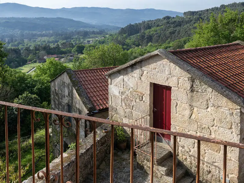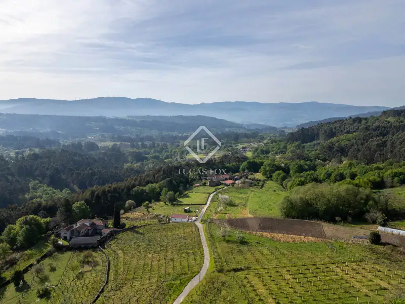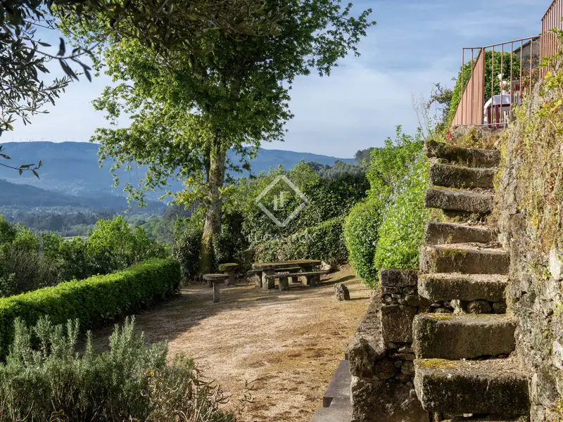 The property is completely private, tranquil and peaceful, overlooking the valley towards the Portuguese border and the mountains. It includes a little over 1 hectare of private land, a large Galician stately stone home and two small stone cottages.