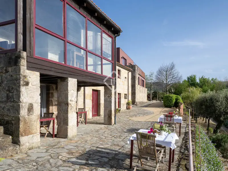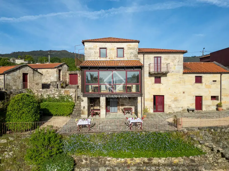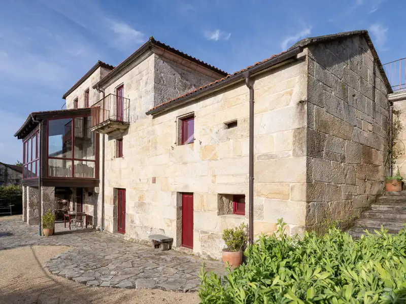 Dating back to 1880, the original building was restored respectfully, preserving the original walls and stone enclosures and unique elements such as the magnificent "Lareira" (All stone fireplace in Galician) and its exterior patios. It consists of a set of buildings around a courtyard forming an L shape on its north and east sides, and in the south, there are two small stone cottages.