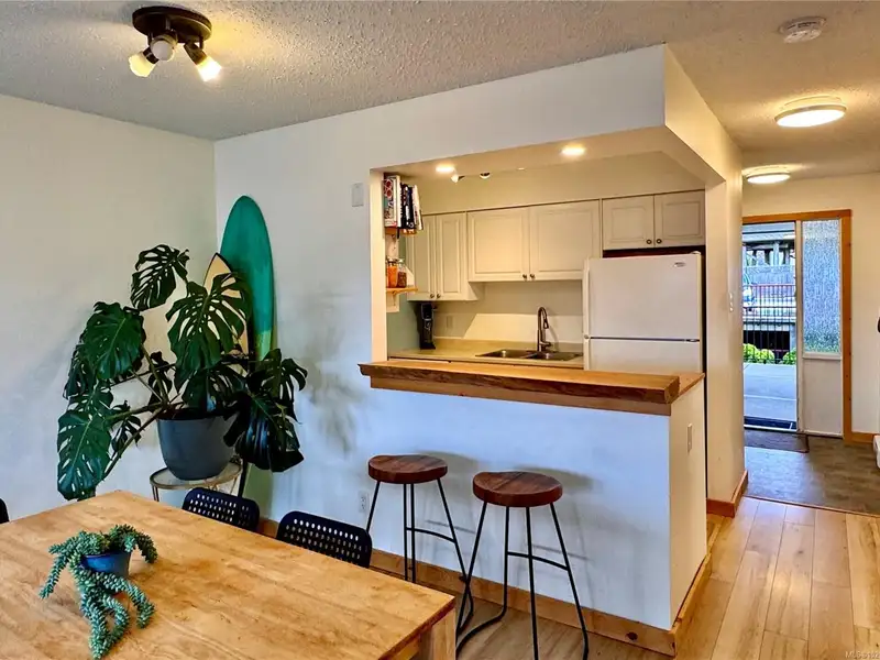Two bedroom pet friendly condo in the heart of Ucluelet, offering strong rental potential for investment, staff accommodation or a vacation home on Vancouver Island. Partially upgraded Ucluelet condo features an open kitchen, dining & living area, updated flooring throughout & in-suite storage/laundry. The covered walkway flanked with lush greenery creates privacy & a tropical courtyard feel while providing easy year round access in our rainforest climate. Entry is especially convenient as this unit does not require stairs for access. The building offers underground & open parking, a resident common room & additional shared storage areas for owners' gear. Enjoy the west facing balcony to take in the sunsets from a private alcove & in the evening you can catch a glimpse of the boat lights reflecting off the water in the harbour. This central Ucluelet real estate opportunity is located across from the boat basin, gym, pool, & sauna, w/ shops, trails, & dock walks only steps away.