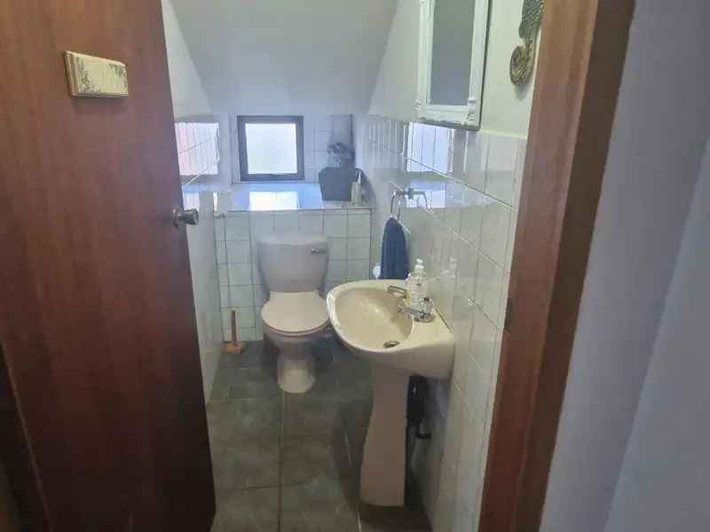 Upstairs area offers another living area leading into partly open plan kitchen. Main bedroom en-suite.