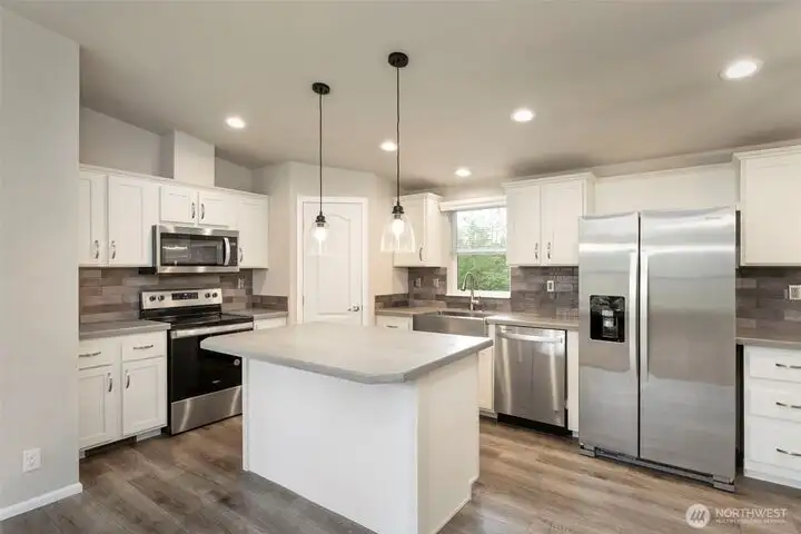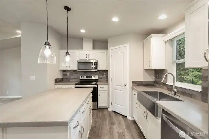 - Quartz countertops in kitchen