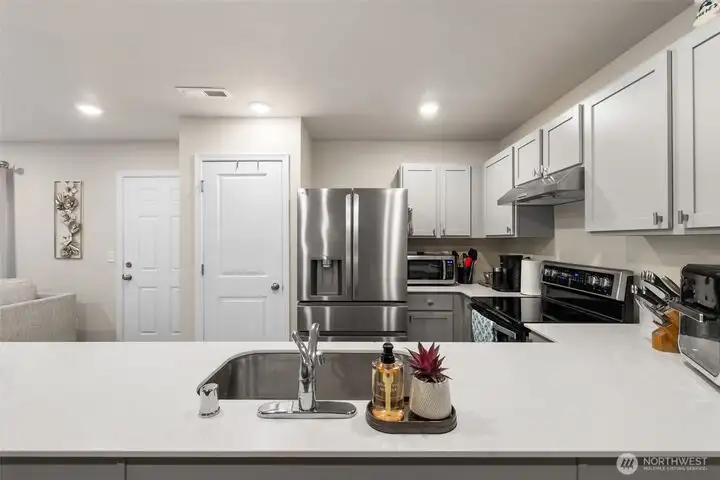 - Kitchen fits full-size refrigerator