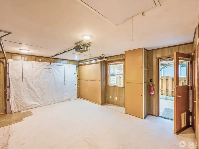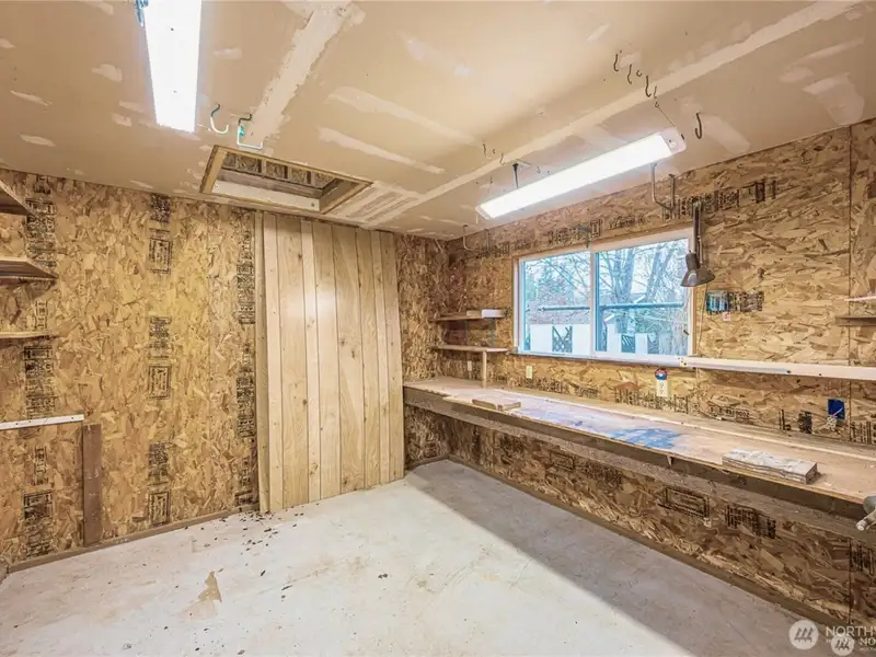 - Garage converted with built-in shelving