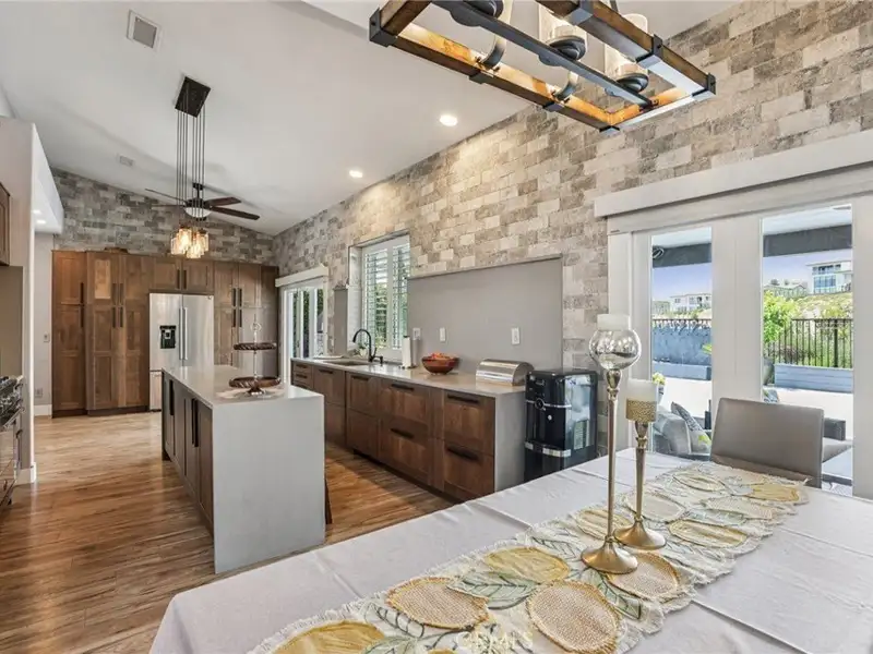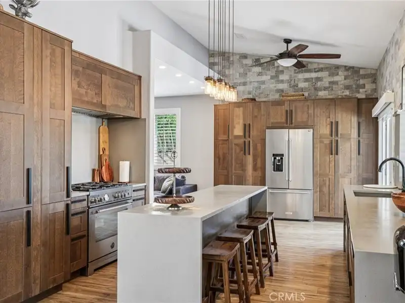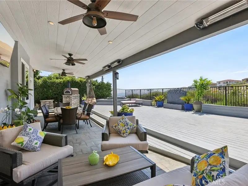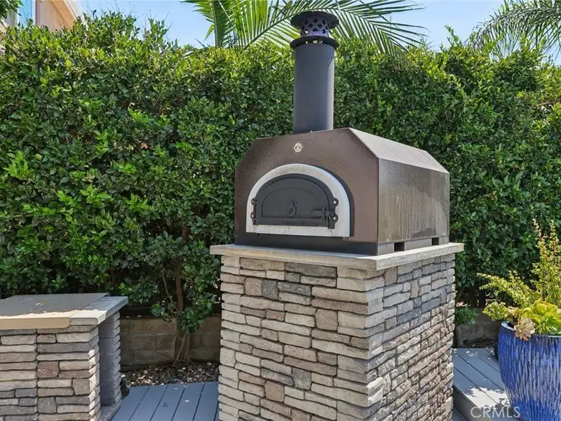 - Entertainer’s backyard with built-in BBQ, pizza oven