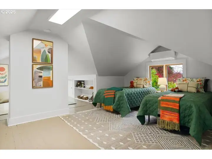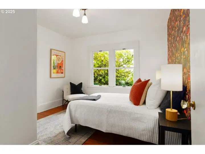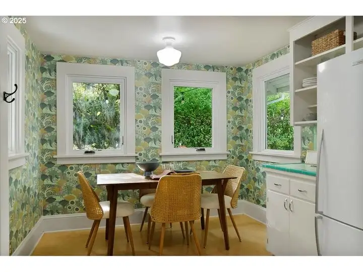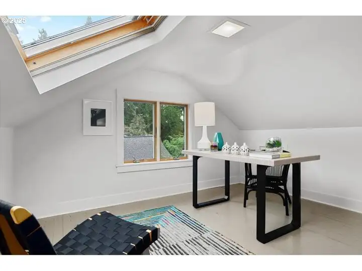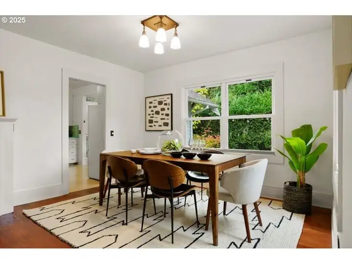 An updated yet preserved bungalow nestled in a secret private garden on a double lot just three blocks from Multnomah Village?! Move-in ready with a fully fenced yard of mature plantings and landscaping?! Detached double car garage with bonus room?! This is the one passersby ask about and that you’ve been waiting for. Fall in love with this light-flooded pairing of preservation and charm around every corner, in a coveted neighborhood that rarely comes available. Curl up in front of the fireplace in the living room overlooking the lush front and side gardens, including the raised beds for the urban farmer/flower lover in you. Host a dinner in the dining room with big windows overlooking the gorgeous garden designed for year-round enjoyment. The eat-in kitchen is true vintage yet superfunctional with thoughtful updates. The two cozy main floor bedrooms are inviting, and the third plus extra bonus areas on the second floor has plenty of flex space for playroom, office, studio, craft area…you decide. Outside every door and window is an entrance to your own private park alive with flowers and birdsong. The upgrades marry efficiency to functionality: the gas furnace with Nest thermostat and heat pump water heater are both high efficiency; the Marvin Infinity windows with transferable warranty are insulative and paintable fiberglass that upholds the aesthetic of the original wooden windows; a Mr. Cool mini split keeps the second floor comfortable year-round, and the newer roof (2020 tear-off) will keep you dry and warm for years to come. Yet so much potential remains as well: the big daylight basement has full height ceilings and two exterior doors; the double garage with additional insulated workspace has a vaulted ceiling, ceiling fan, heat and power; the subpanel is wired for 220 and has the breaker ready for a new level 2 car charger; and the 2000+SF side yard has plenty of room for your dream project. You don’t have to settle, you can have it all. [Home Energy Score = 3. HES Report at https://rpt.greenbuildingregistry.com/hes/OR10242702]