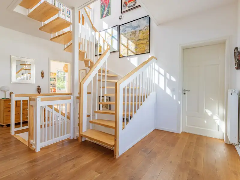 This detached house from 2011 in a sought-after residential area in the Babelsberg villa colony, close to Lake Griebnitzsee, impresses with its well thought-out layout and a total living space of approx. 241 m². The lovingly landscaped plot has a size of approx. 963 m². With its high-quality fittings and energy-efficient concept, this very well-maintained property fulfills sophisticated living requirements in a prestigious residential environment.