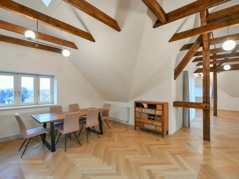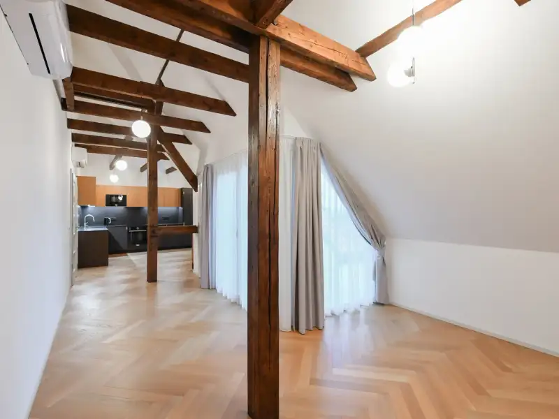 The apartment can be comfortably accessed from the garage through the renovated garden or through a separate pedestrian entrance on the other side of the house. The apartment has its own entrance into a lobby with a private staircase, ensuring maximum privacy and the atmosphere of living in a separate villa.