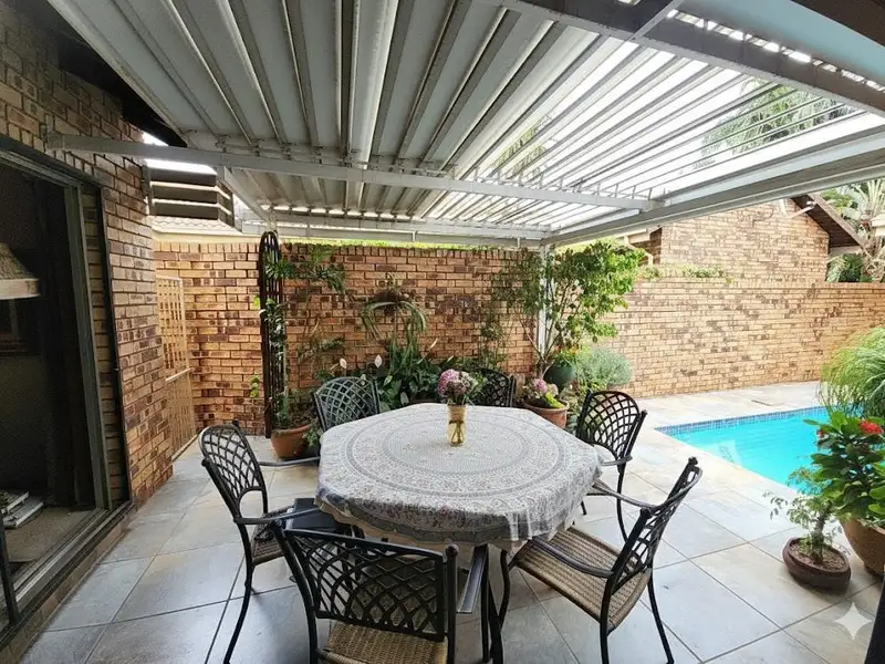 Overlooking the sparkling swimming pool is a covered patio with a stylish louvre roofΓÇöideal for sunny afternoons, braai days, or cosy rainy moments.