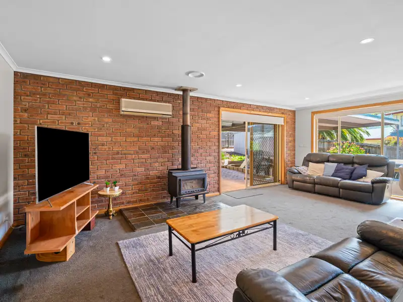 Inside, two separate living areas offer room for everyone – a welcoming formal lounge at the front and a relaxed family room at the heart of the home. Climate control is well-covered with a cosy wood heater, heat pump, and a ceiling heat-transfer system to keep temperatures comfortable throughout.
