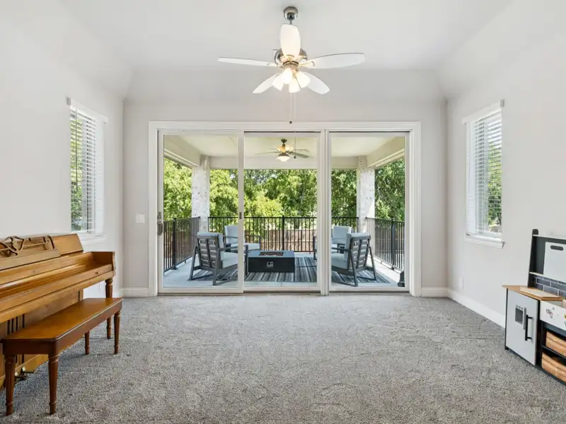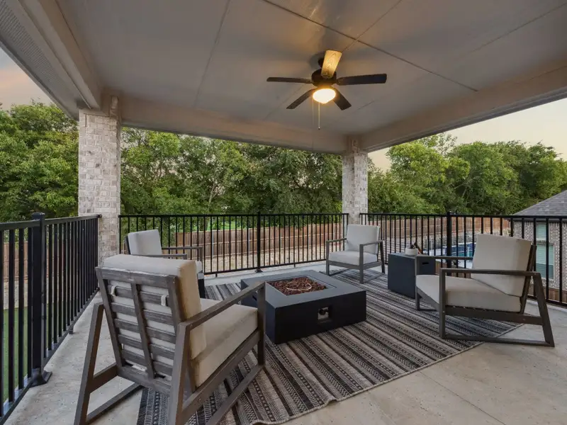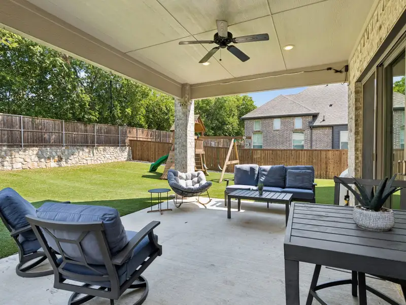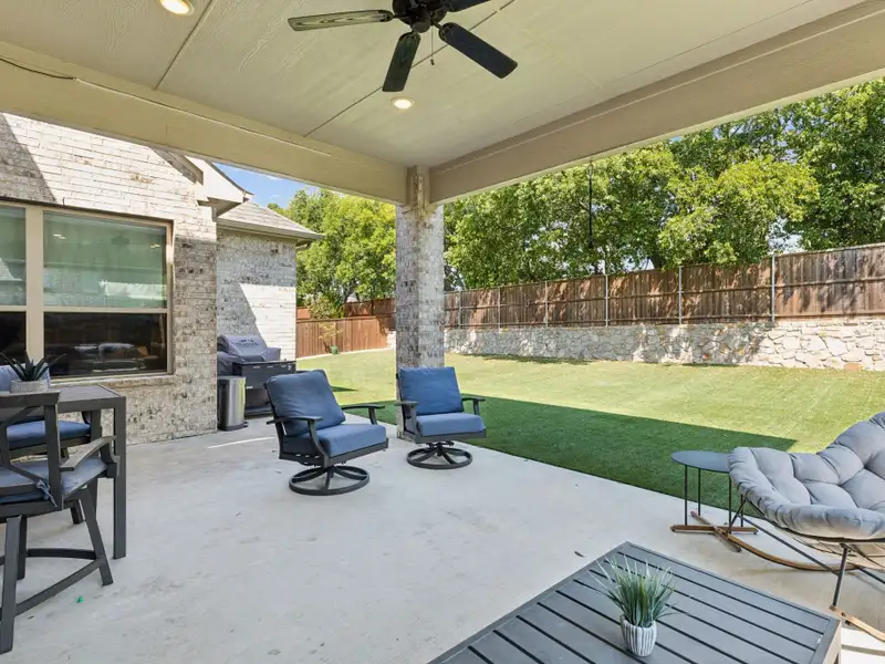 - Covered balcony overlooking low maintenance backyard
