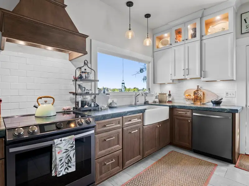 - Updated kitchen with custom cabinetry and river views