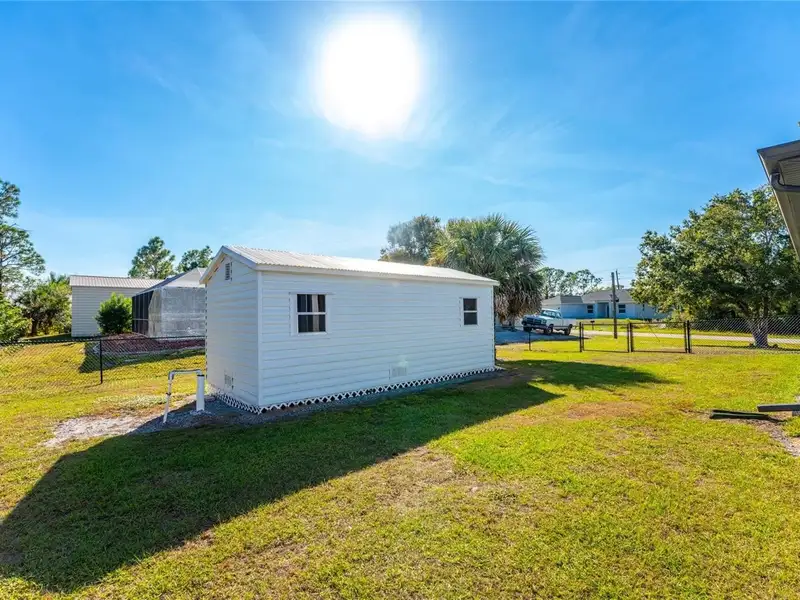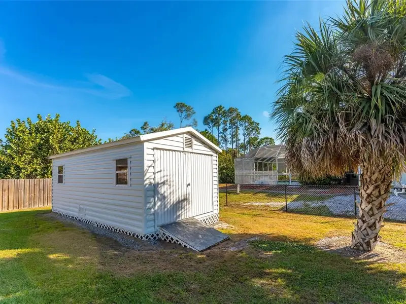 Step outside to a nicely landscaped yard, fenced backyard, large, screened lanai for outdoor living, and a 10’ x 20’ shed for storage needs. The location offers convenient access to everything you need. Daily errands become a breeze with grocery stores, pharmacies, numerous restaurants, and Sunseeker Resort within a ten-minute drive. Families will appreciate the proximity to highly-rated Charlotte County schools, making school commutes manageable and stress-free. Communing is made easier with access to I-75 in less than 10 minutes and Highway 41 is even less. All that, AND there are NO DEED RESTRICTIONS OR CDD FEES.