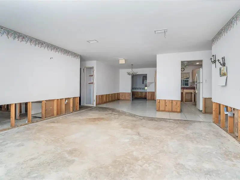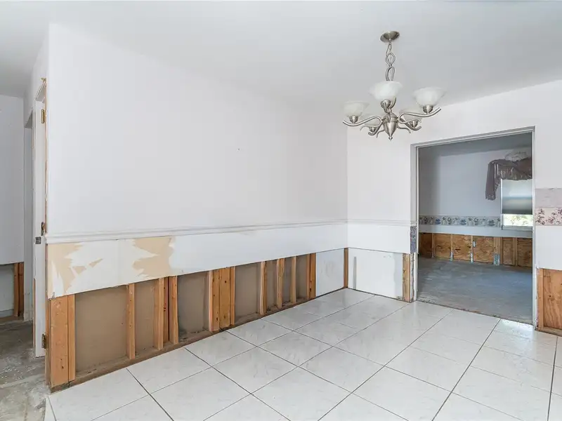 - Drywall removed above waterline