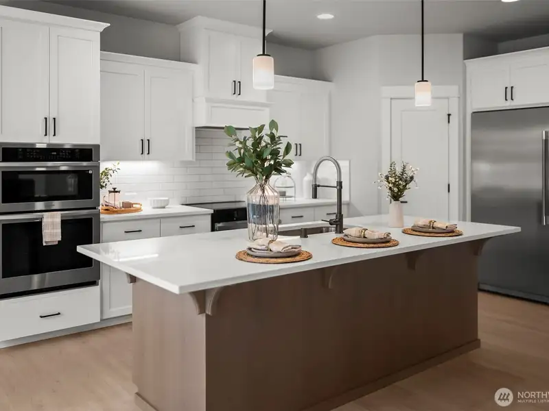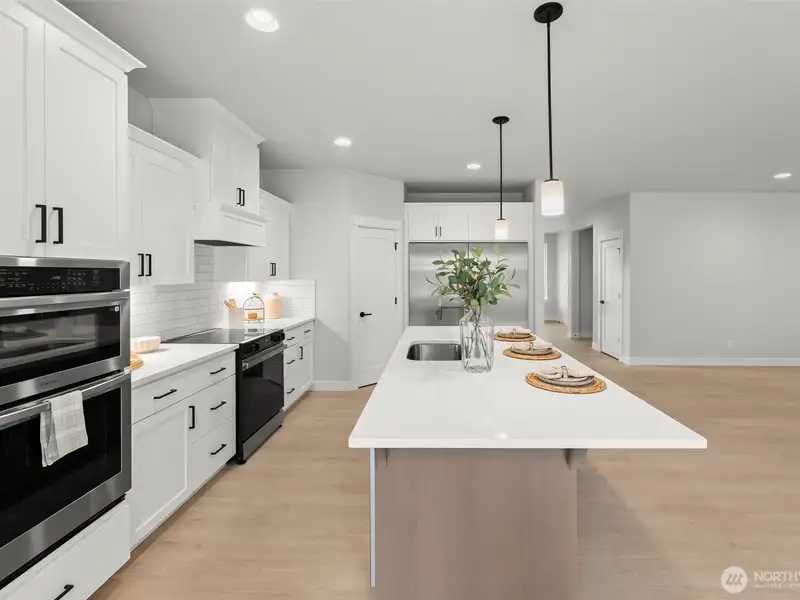 - Kitchen with double ovens and island