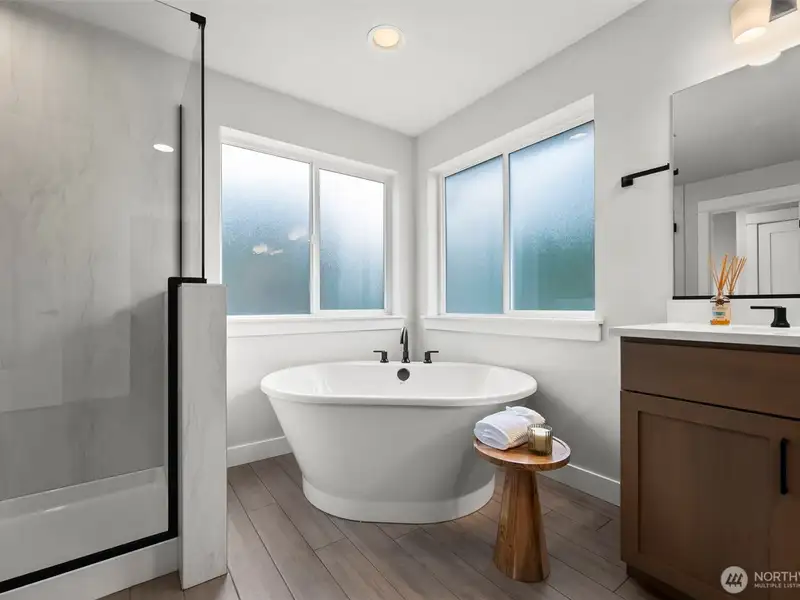 - Expansive primary suite with soaking tub