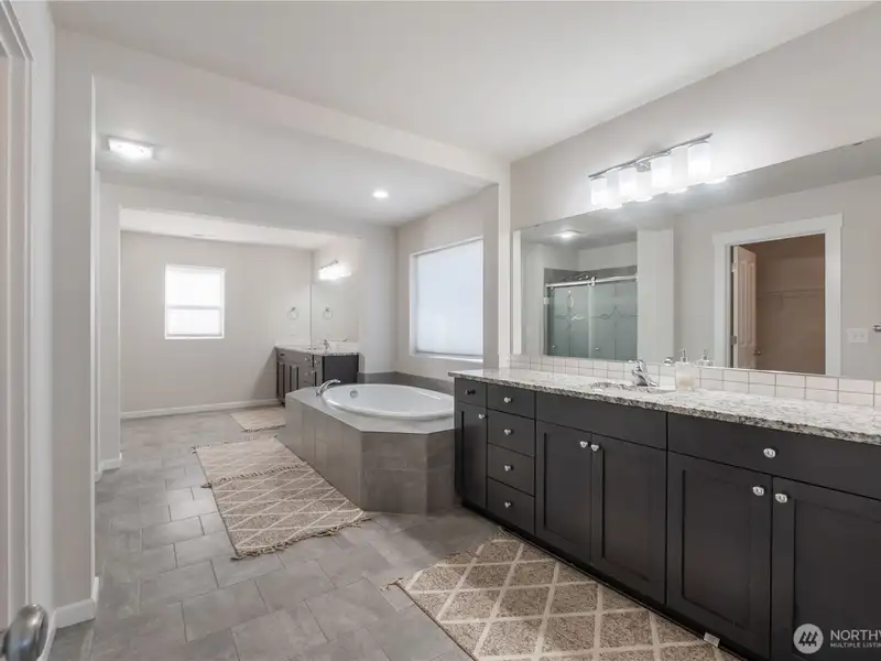 - Main-level primary suite with spa bath