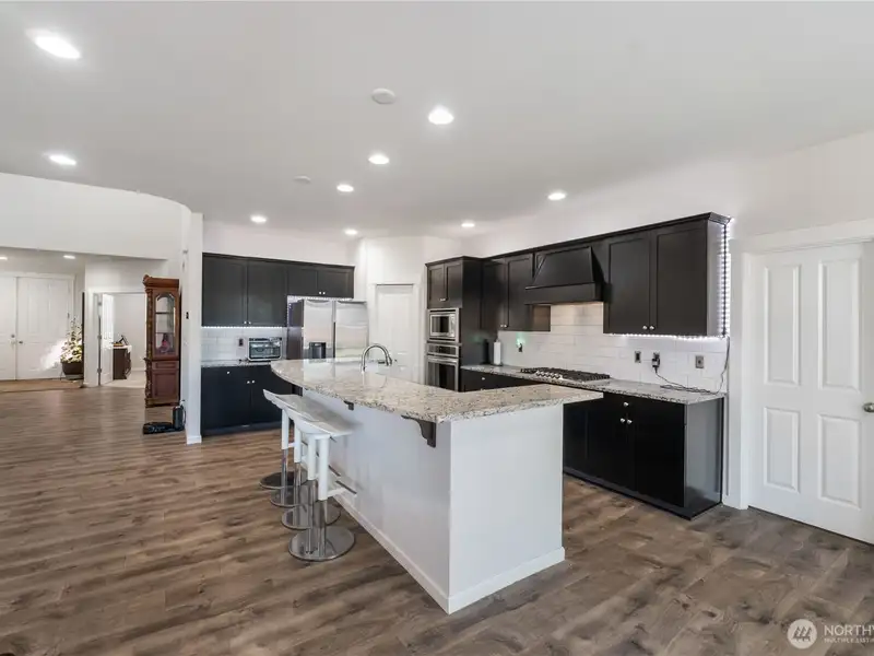- Gourmet kitchen with stainless gas appliances