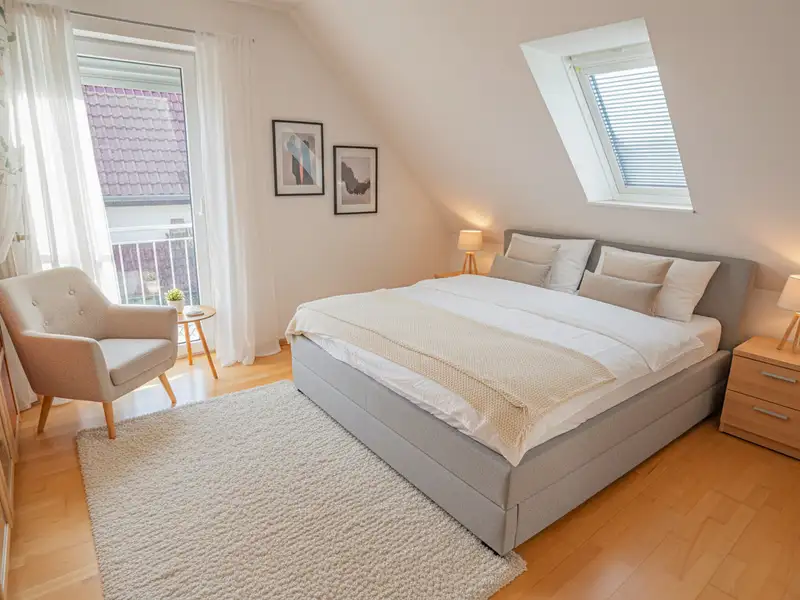 The upper floor impresses with four further bedrooms and two bathrooms. Particularly noteworthy is the en-suite bathroom adjoining the master bedroom, which provides additional comfort. A beech staircase leads to the convertible attic, which offers additional possibilities for further living or working areas.