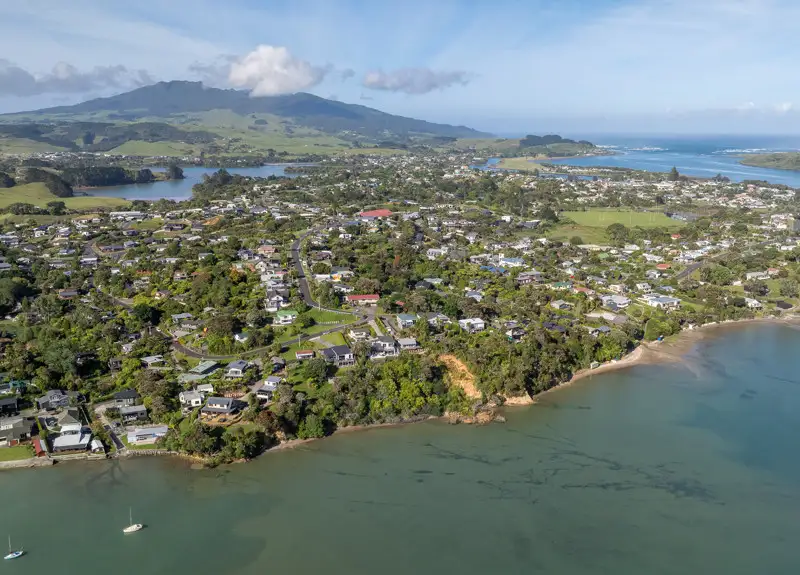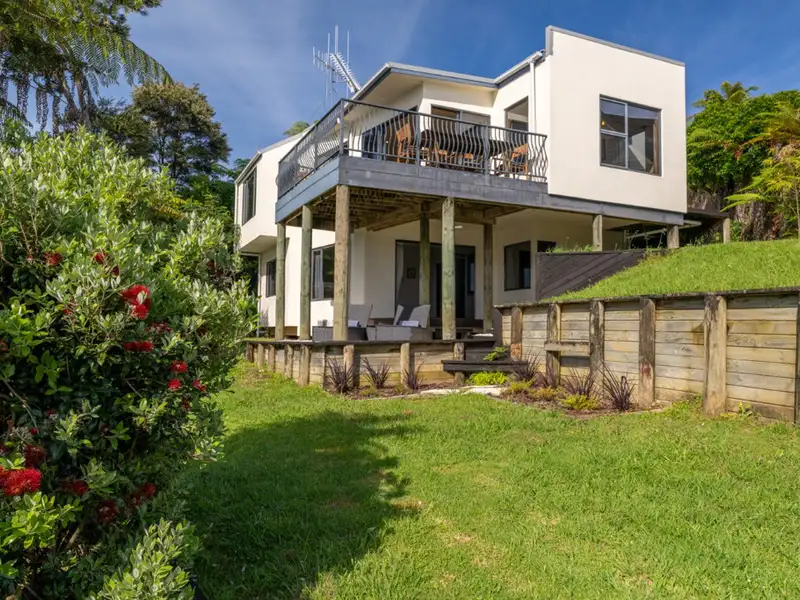Tucked away at the end of a private lane, this beautifully positioned home is a true hidden gem. Boasting elevated, uninterrupted views across Lorenzen Bay and the lush surrounding landscape, it offers a rare combination of seclusion, serenity and style right in one of Raglan's most desirable coastal pockets.