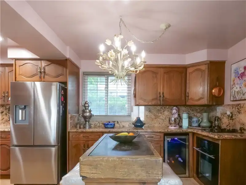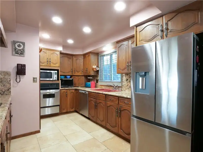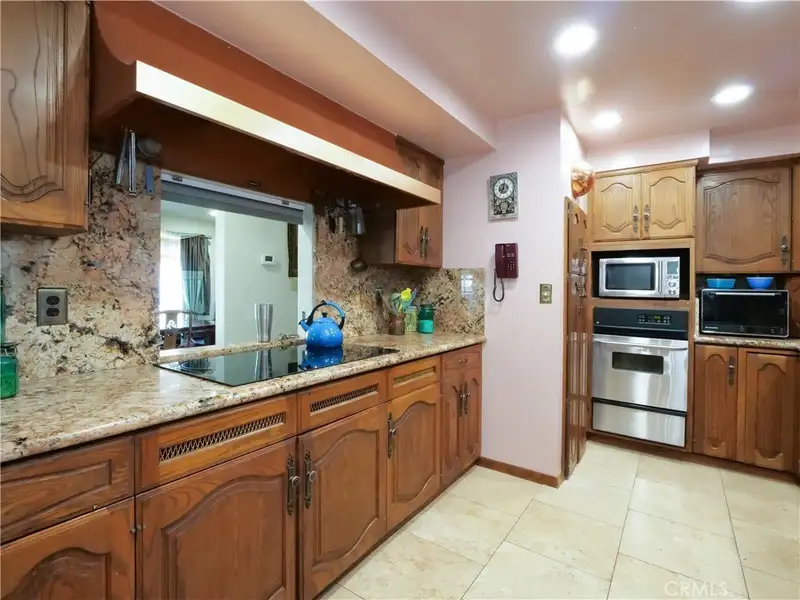 - Kitchen with dual cooking areas and granite countertops