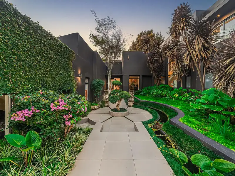 From the moment you enter the gated, boomed-off enclave with dedicated security, a sense of peace settles in. The beautifully landscaped entrance courtyard, complete with a koi stream winding through sculpted greenery, sets the tone for what lies ahead: serenity, sophistication, and seamless indoor-outdoor living.