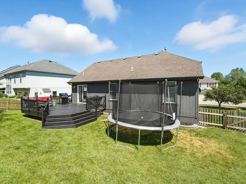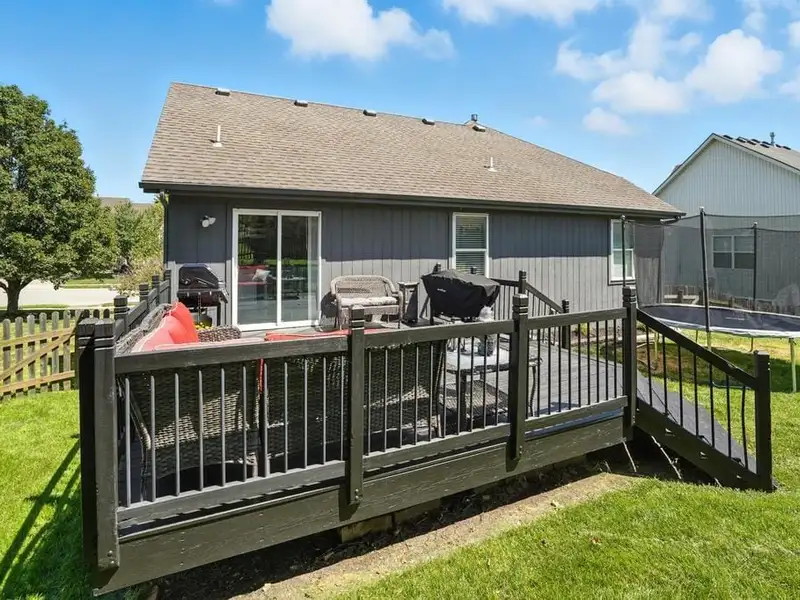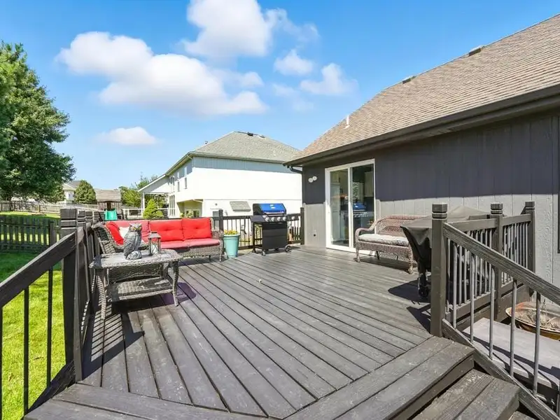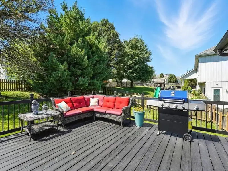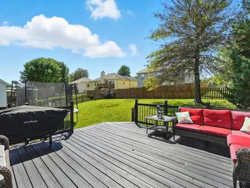 - Large deck overlooking backyard