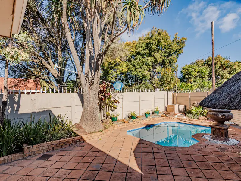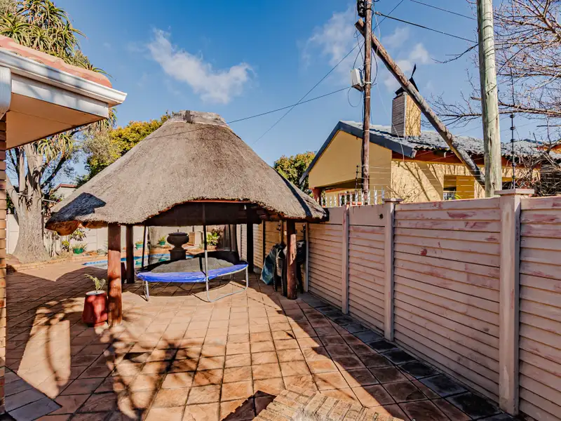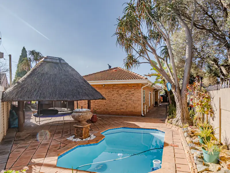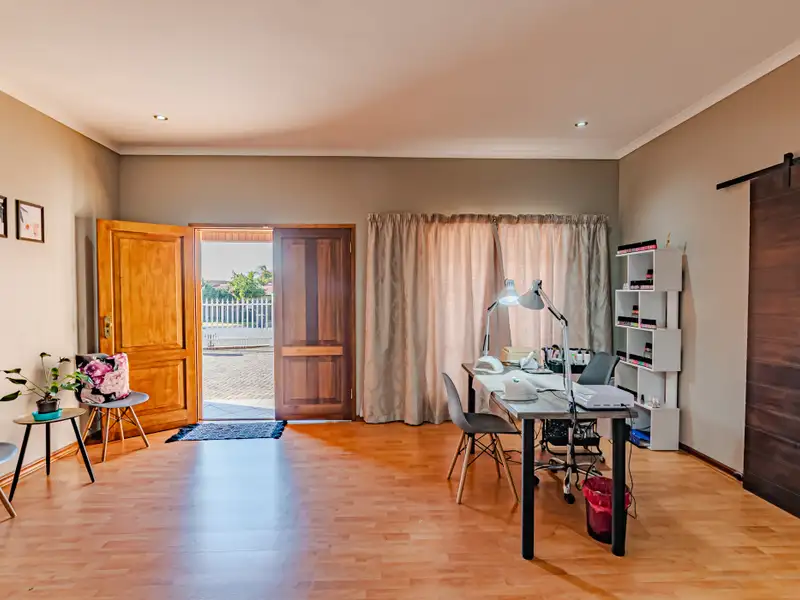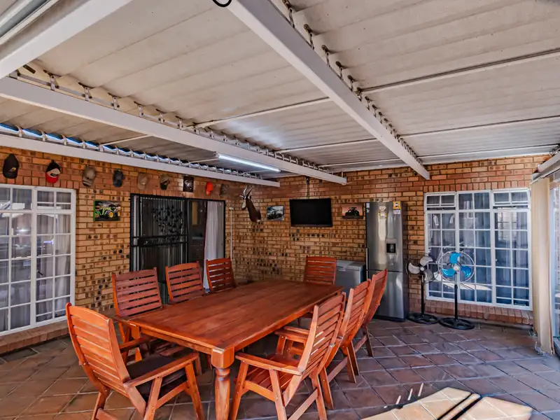 Experience effortless outdoor enjoyment with a sparkling swimming pool, ideal for summer days, and a thatched lapa offering a shaded space for gatherings and outdoor meals. A built-in braai area and boma fire pit make this home an entertainer’s dream, perfect for hosting friends and family. The automated irrigation system ensures the garden stays beautifully green with minimal upkeep.