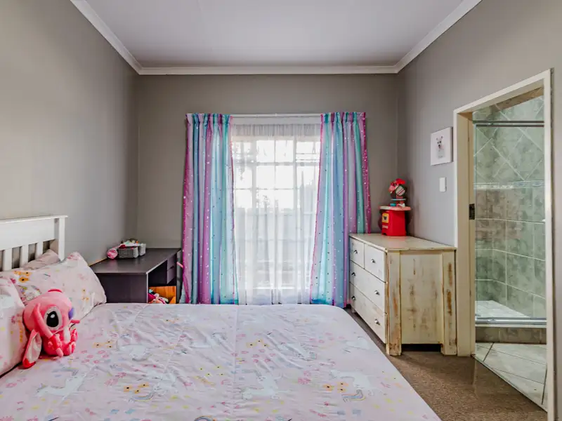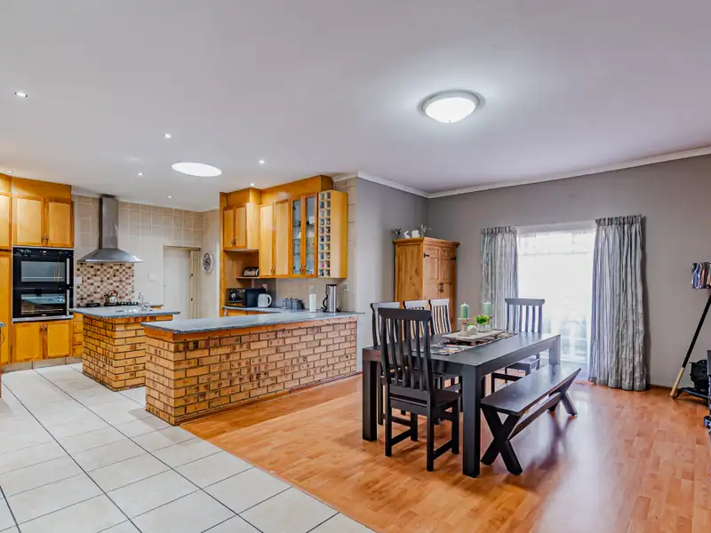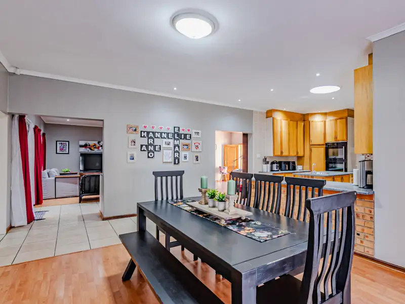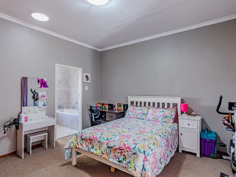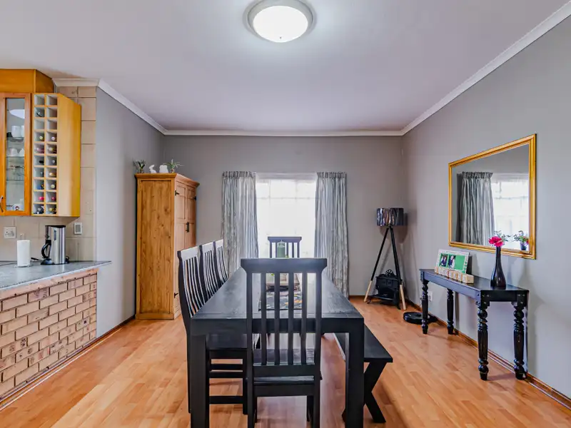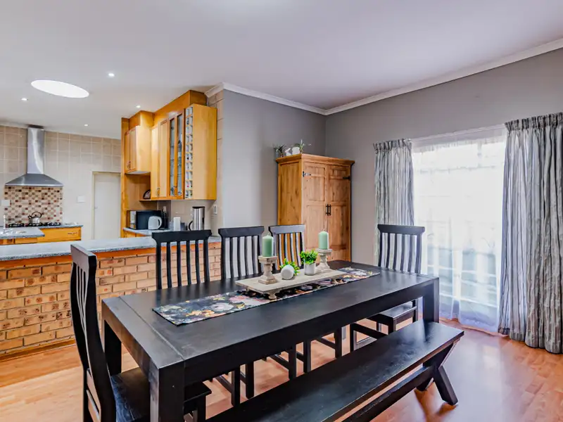 This spacious and thoughtfully laid-out home features four well-sized bedrooms, ideal for family living. The main bedroom includes a full en-suite bathroom, while the home also offers an additional full bathroom and a guest toilet (2.5 bathrooms in total). The kitchen is functional and inviting, flowing seamlessly into a dining area perfect for family meals. A cozy yet spacious TV room/lounge provides a comfortable space to relax and unwind. A separate scullery adds practical convenience and keeps the main living area clutter-free.