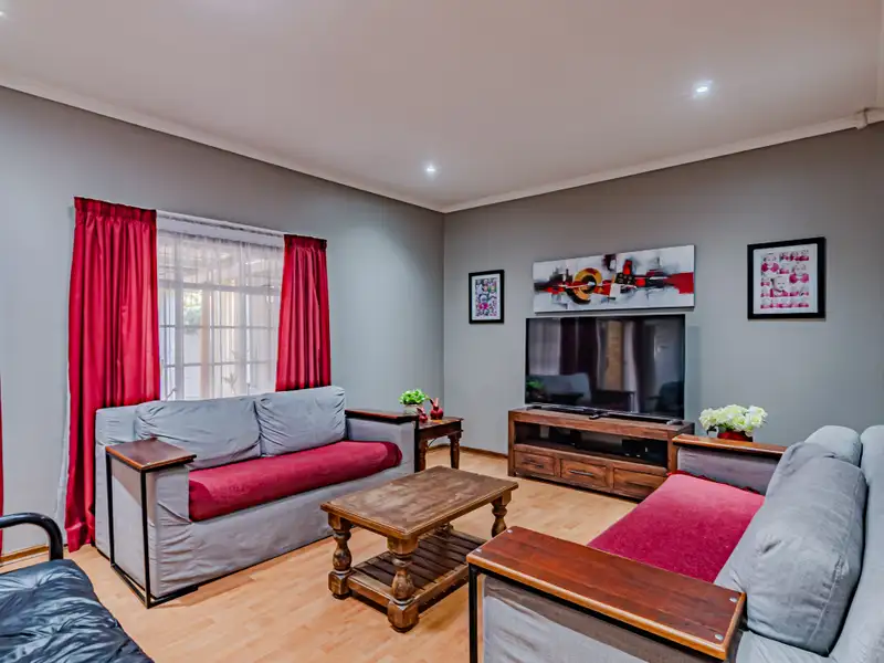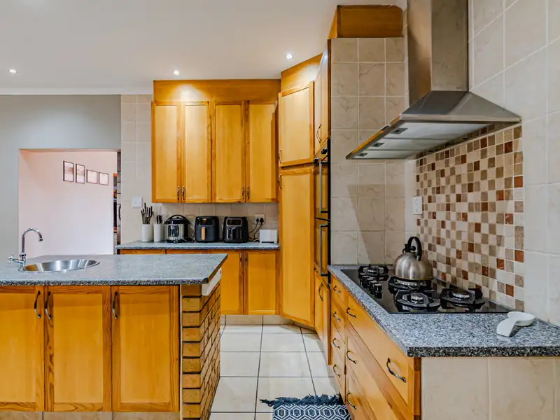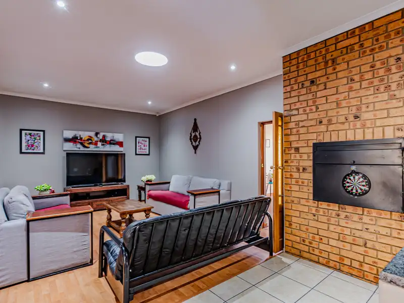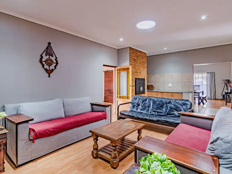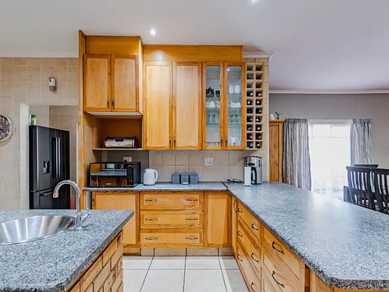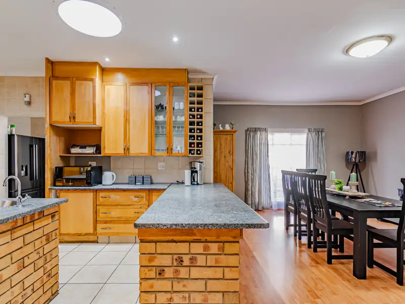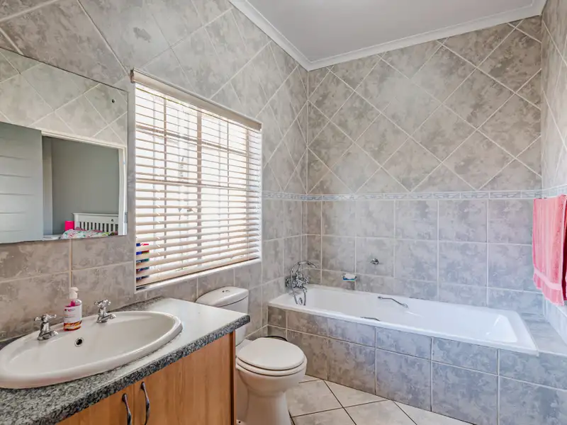 This spacious and thoughtfully laid-out home features four well-sized bedrooms, ideal for family living. The main bedroom includes a full en-suite bathroom, while the home also offers an additional full bathroom and a guest toilet (2.5 bathrooms in total). The kitchen is functional and inviting, flowing seamlessly into a dining area perfect for family meals. A cozy yet spacious TV room/lounge provides a comfortable space to relax and unwind. A separate scullery adds practical convenience and keeps the main living area clutter-free.