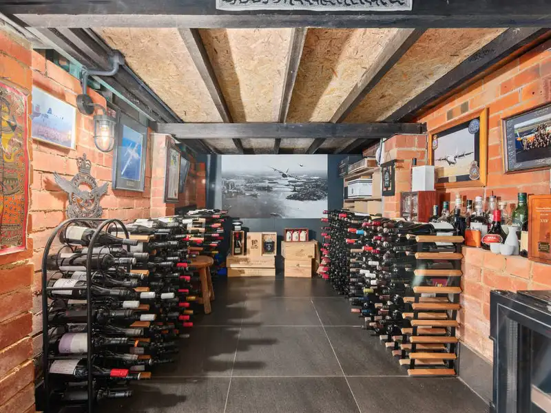 Accommodation includes a tranquil master suite with expansive views, walk-in wardrobe and ensuite, additional bedrooms with built-in robes and a separate study or media room. Practical extras such as a dedicated cellar and workshop add flexibility and convenience for storage, hobbies or collections.