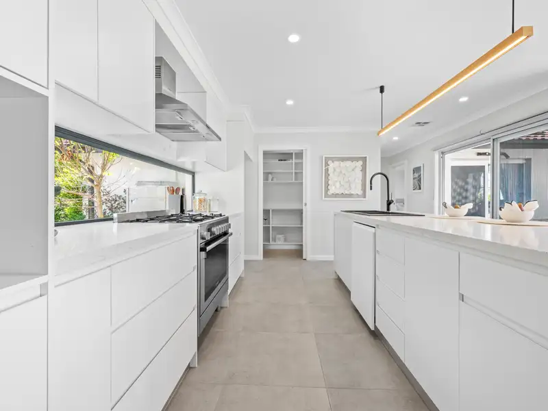 Designed with comfort and practicality at its core, the home features a warm and inviting layout ideal for easy day-to-day living. The central kitchen is fitted with quality appliances, a generous island bench and a full butler's pantry, providing excellent preparation space and storage. The adjoining living and dining areas capture natural light and extend effortlessly to the garden and alfresco zones.