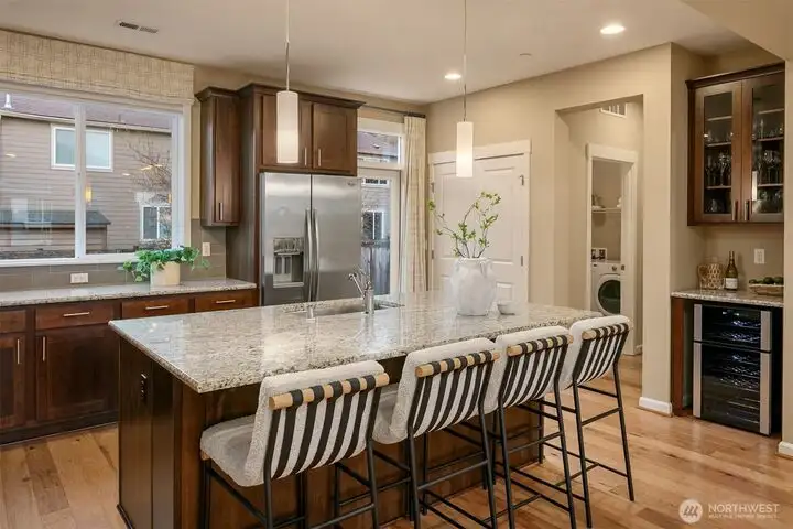 - Modern kitchen with granite and wine fridge