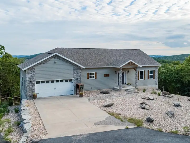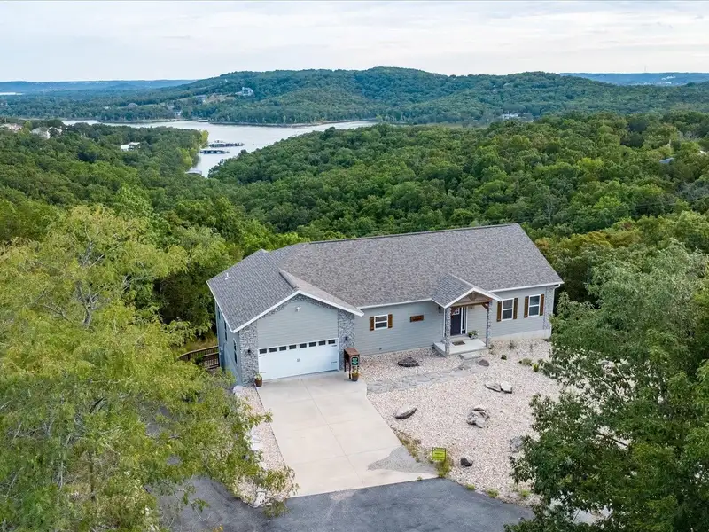 Experience breathtaking Table Rock Lake views and unmatched privacy on over 3.5 acres!This gorgeous custom home captures stunning lake views from nearly every room and sits on a rare, expansive 3.6 acre parcel--providing the perfect blend of seclusion, tranquility, and outdoor space. From peaceful mornings on the deck to evening sunsets over the water, this property delivers the lake-life dream.Designed with comfort and accessibility in mind, the entire home is wheelchair accessible and includes a full elevator. Natural light fills the spacious upper level, featuring a large master suite, beautifully appointed bathroom, bright kitchen, open-concept living and dining area, half bath, laundry room, and dedicated office space.The lower level lives like its own private retreat with a second living area, kitchenette, guest bedroom and bathroom, utility room, additional office/storage space, and--best of all--a hidden bookshelf door leading to a second ensuite bedroom. Perfect for guests, multi-generational living, or the ultimate private hideaway. Two additional bedrooms, making this 5 total, have been partially utilized for the elevator.