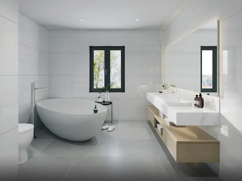 The spacious master bedroom with a peaceful garden view offers enough space for a large closet and several chests of drawers. Right next door is a practical children's room. A further room is available for individual use, for example as a home office area. The apartment also has a daylight bathroom with a comfortable free-standing bathtub, shower, WC and washbasin, which can be fitted out according to the owner's wishes.