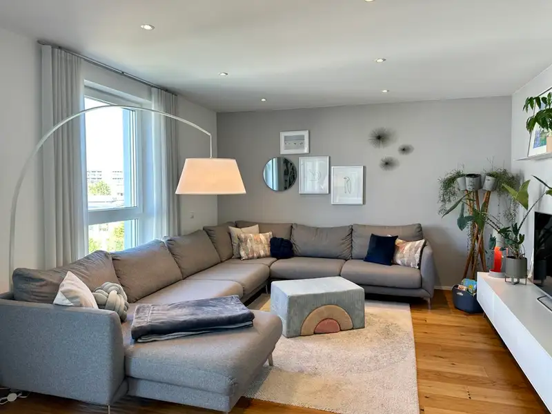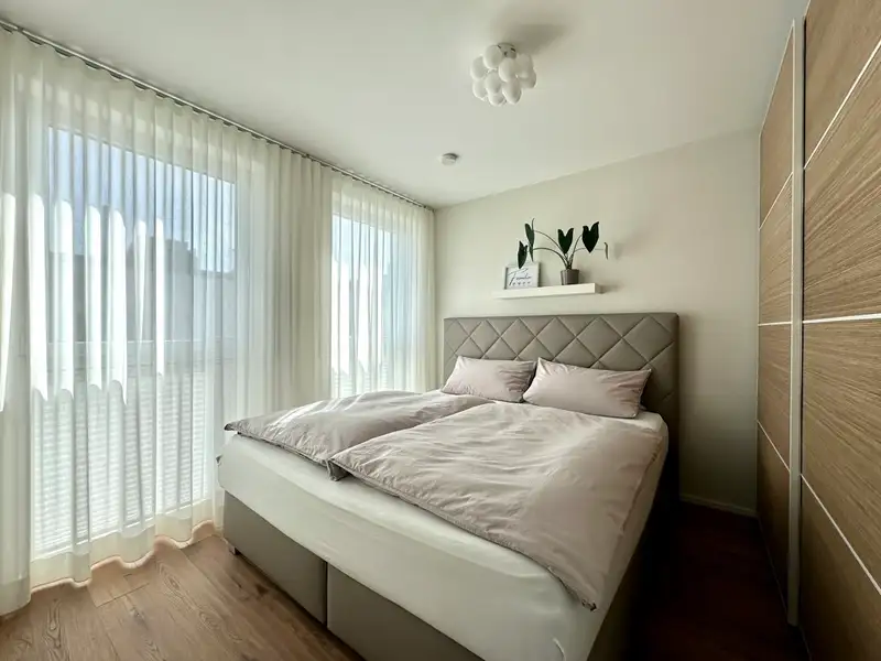 This apartment impresses with its high-quality fittings and outstanding construction quality with excellent energy values. Inviting solid oak parquet flooring, energy-efficient triple-glazed floor-to-ceiling windows and a spacious hallway area with ample space for a wardrobe greet you as you enter the apartment.