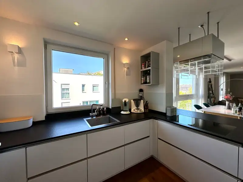 This apartment is an absolute highlight on the Regensburg real estate market. It not only offers an upscale living ambience, but also a unique roof terrace with spectacular views. See this exclusive dream home for yourself and arrange a viewing appointment. You should not miss this opportunity! This exquisite property also includes a large cellar compartment (approx. 13 sqm) and a private parking space for your car with electric hook-up (EUR 25,000). There is also a small utility room for washing machine and dryer under the stairs. There are also plenty of parking spaces in this traffic-calmed zone at the end of the residential street.